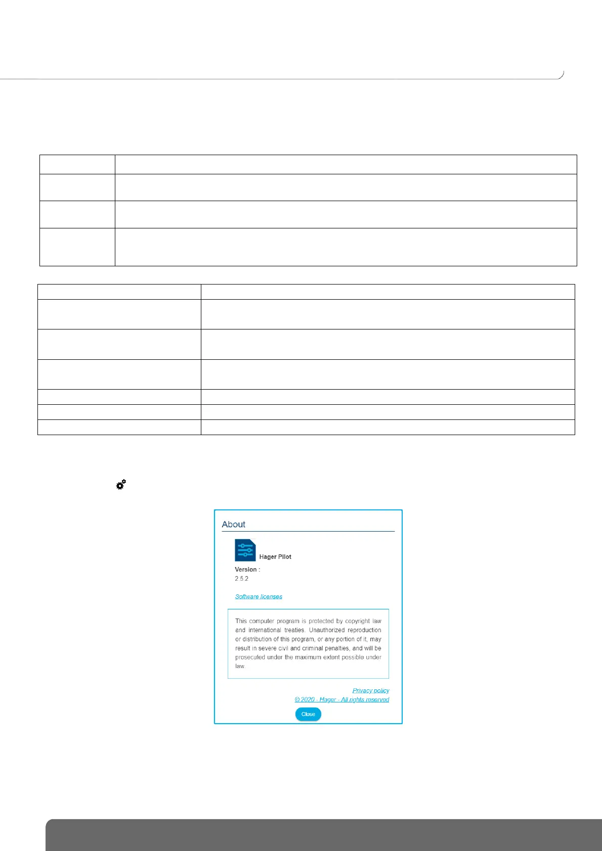 In this menu, you will find information on the configuration interface software version, as well as disclaimers.