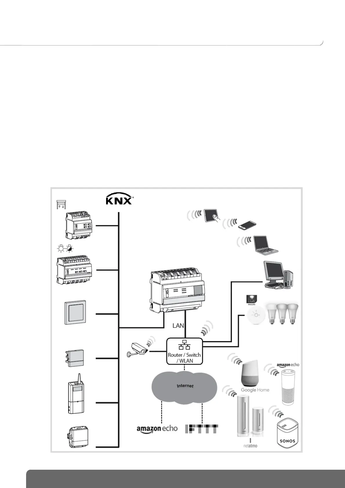 - The Server: A TJA670 or TJA470, a physical interface between the KNX bus and the local network in the
