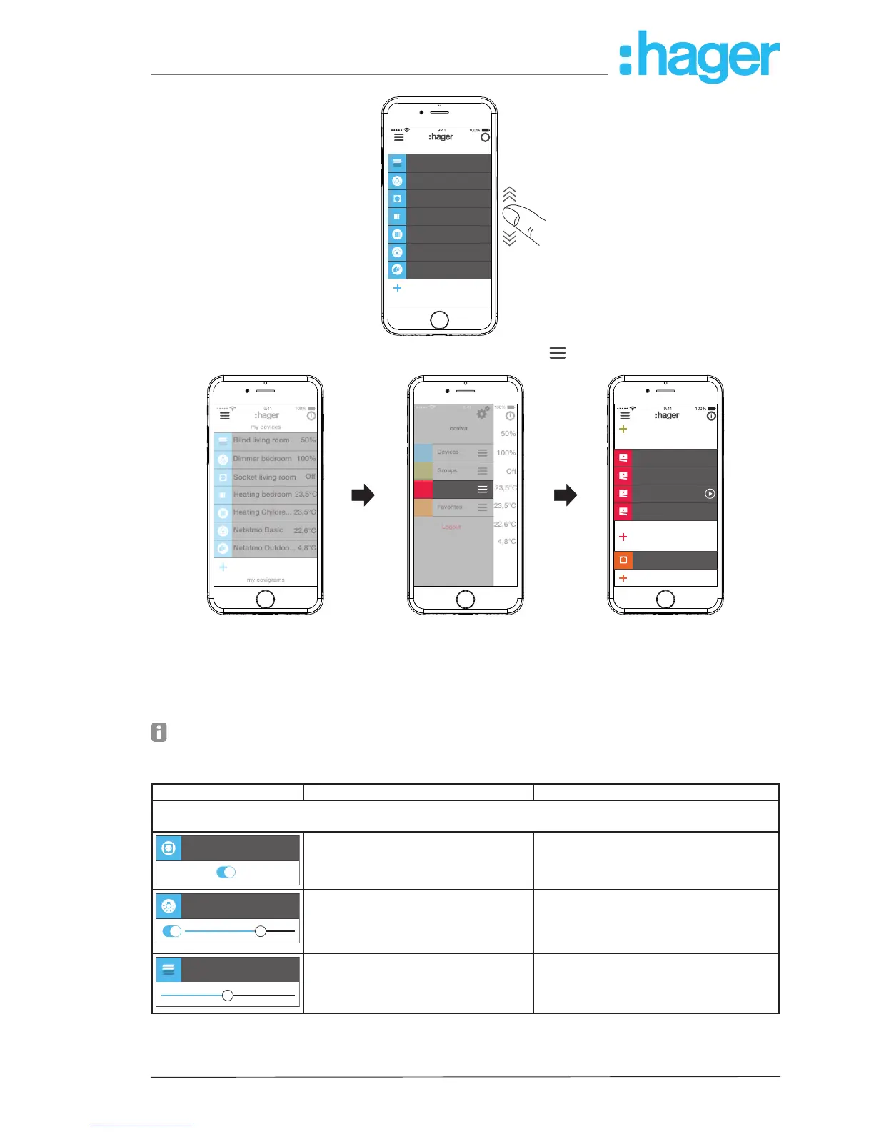 low is an overview of the basic operating modes and applications in the coviva app (see Table