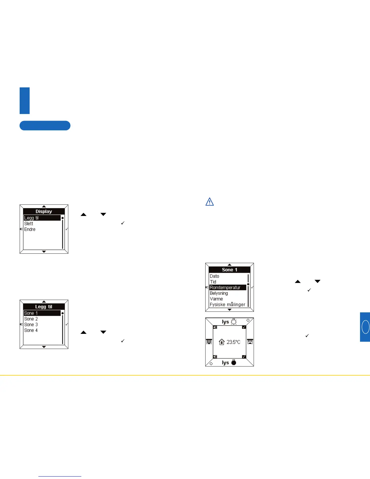 Displayet kan vise opp til 4 linjer eller “soner”. Det er