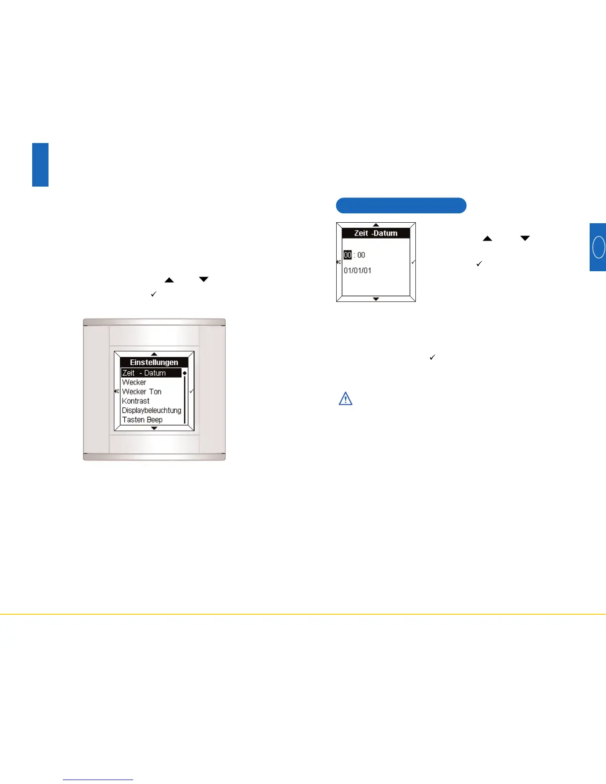Einstellung der Minuten, des Tages,
