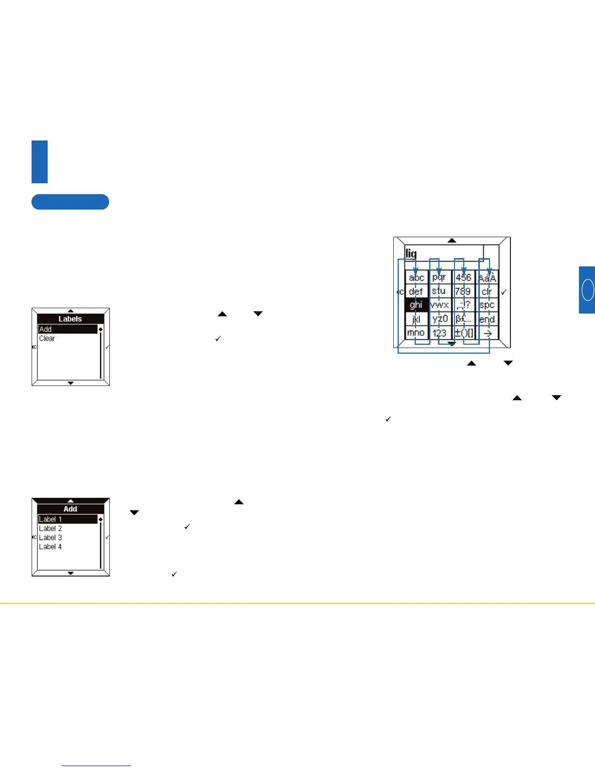 • Select a label using the and