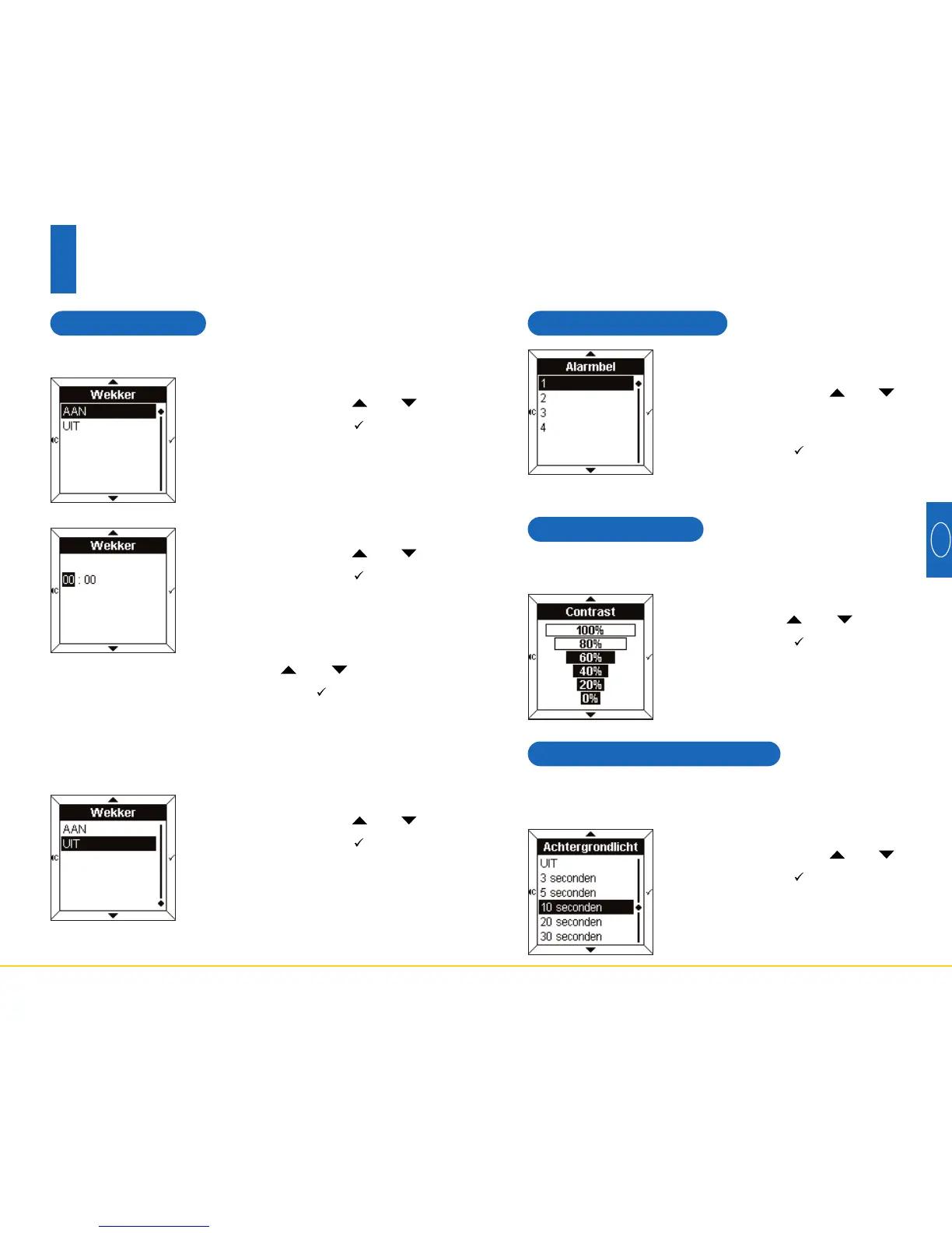 • Selecteer het contrast door middel