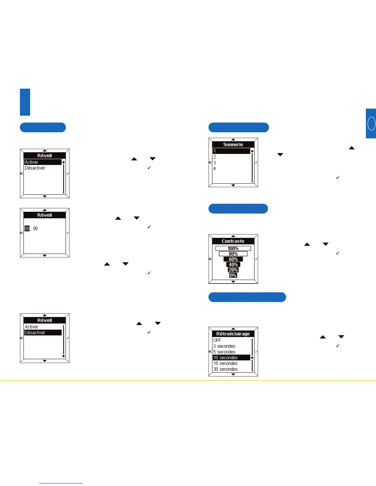 la durée ou désactiver le rétroéclairage dans ce menu.
