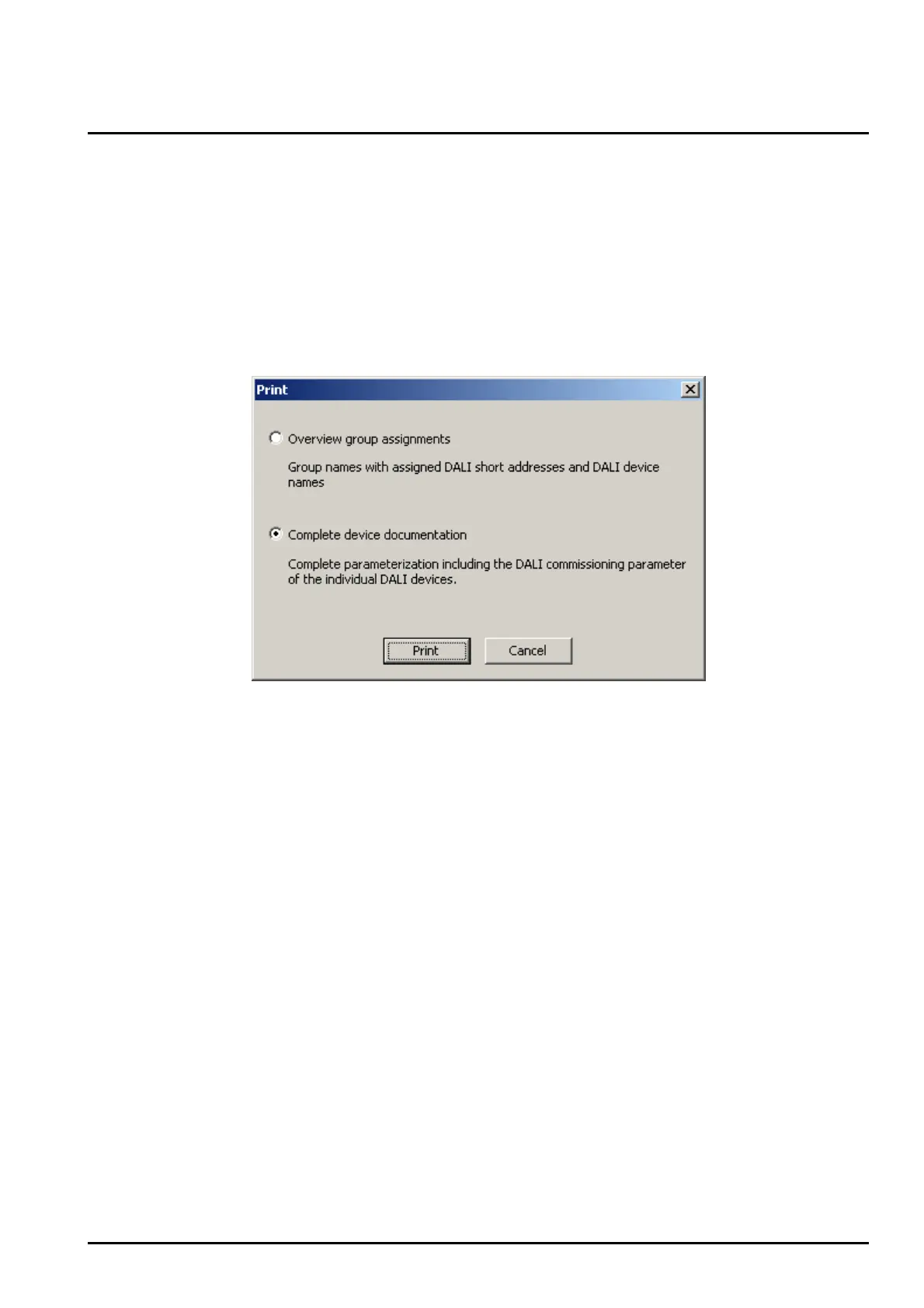 The plug-in of the DALI Gateway also permits the printing of the entire device configuration including