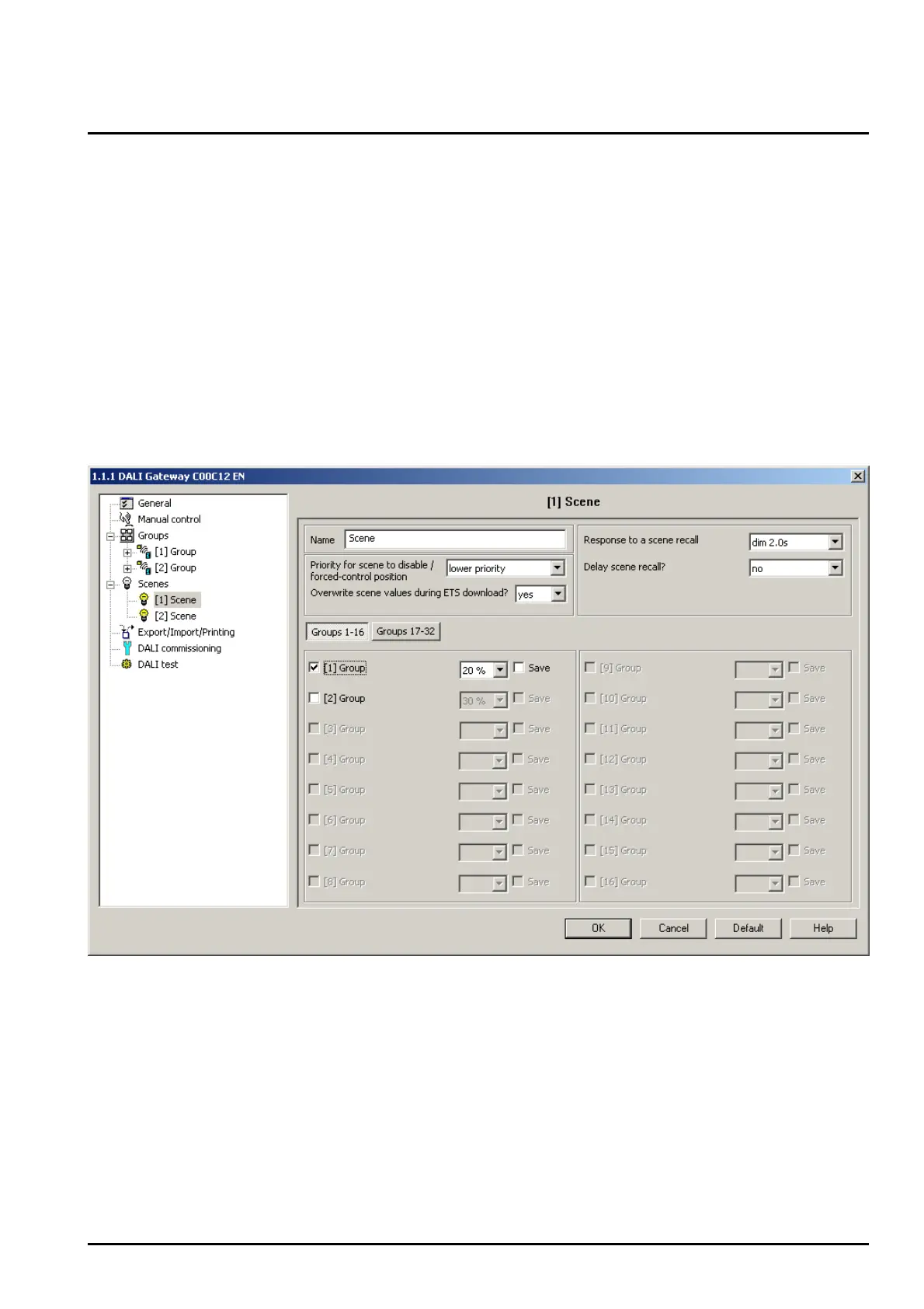 available DALI group. A scene brightness value can also be parameterized and stored in the DALI