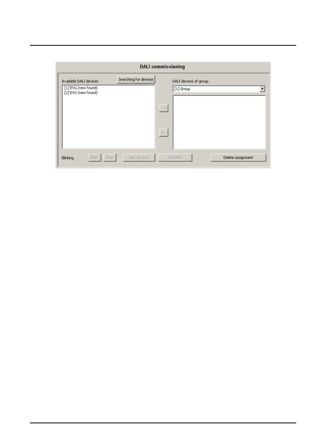 For this purpose the DALI devices listed in the left window have to be moved into the right window of