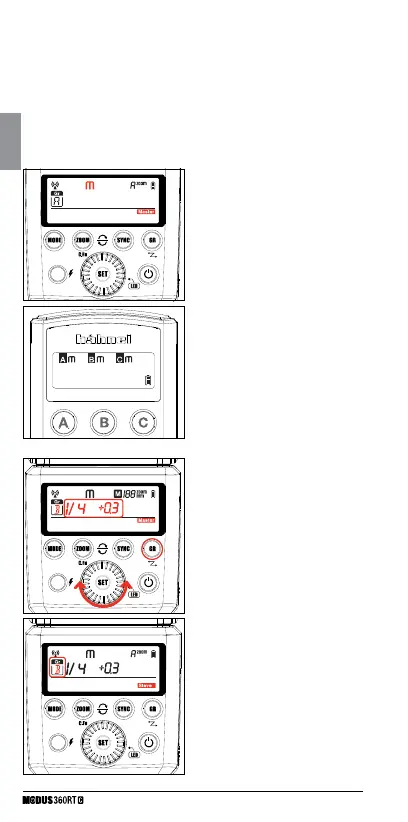 different flash output setting for each slave unit (firing group). Set all