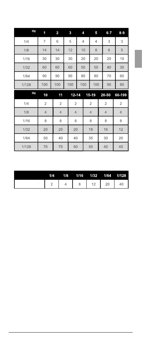 Anzahl von Blitzen wie in der folgenden Tabelle aufgeführt,