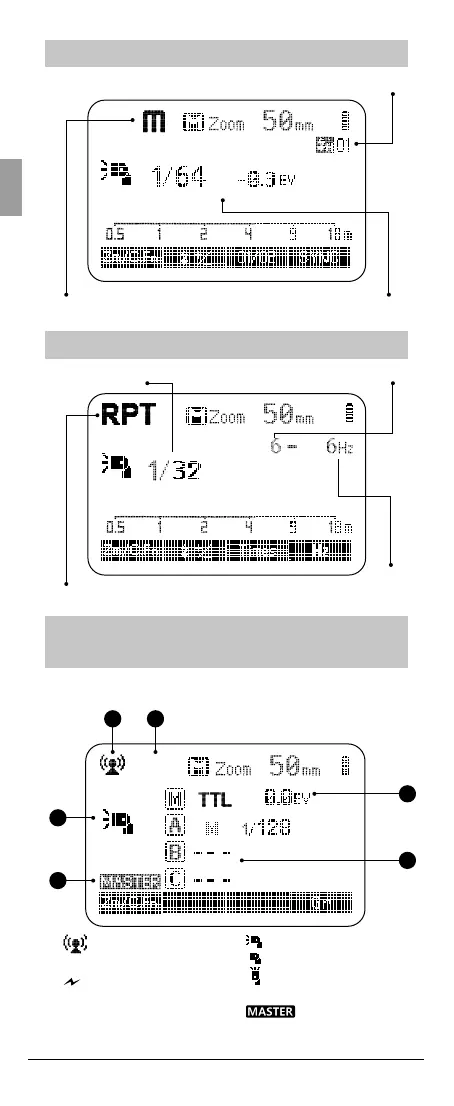 M : Flash manuel Puissance de sortie du ash manuel
