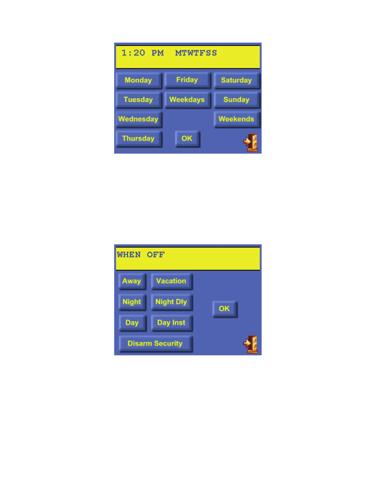 Press Monday-Sunday to select the specific day(s). After a day is selected, it may be deselected