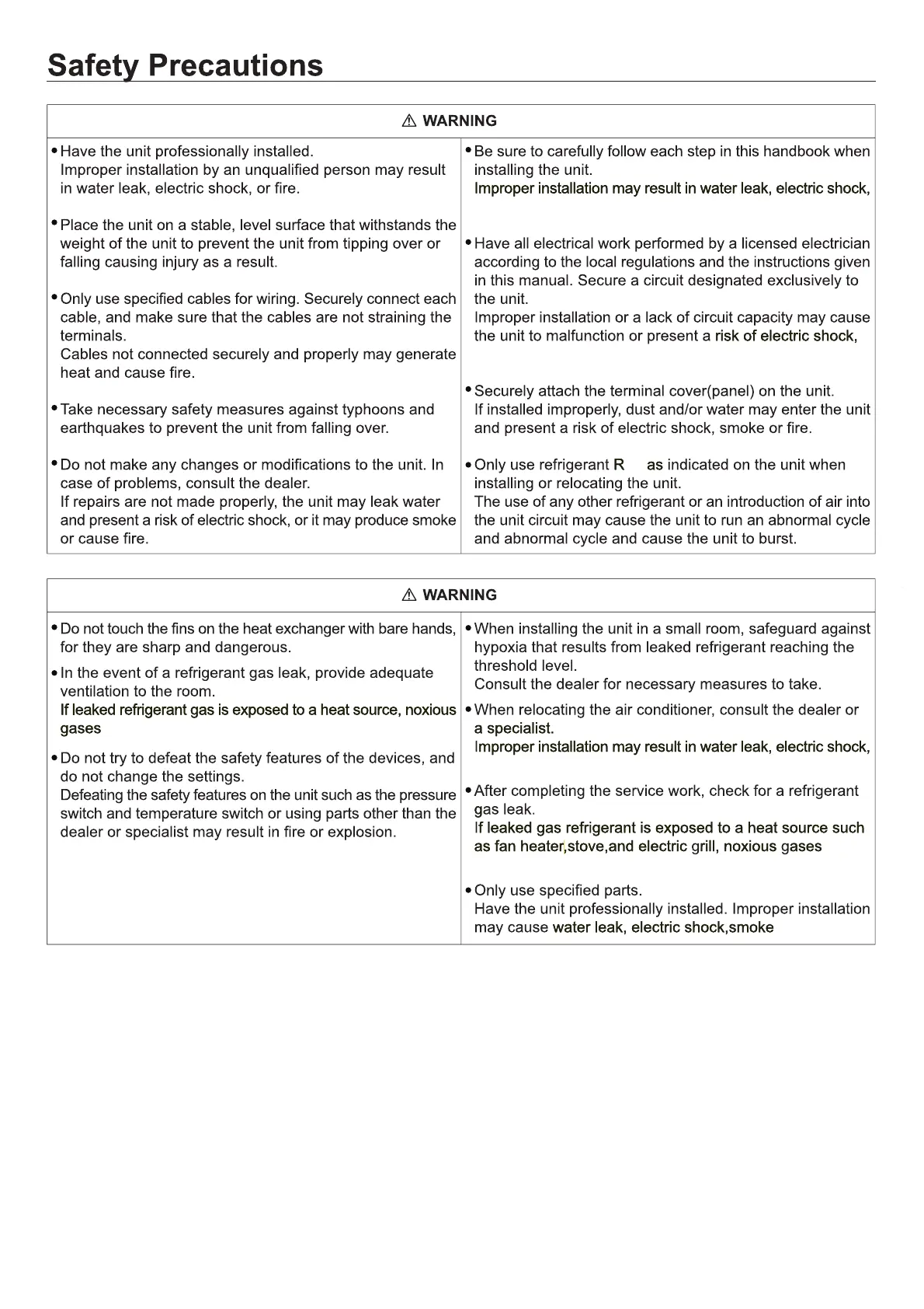 Haier 1U09MACFRA - Safety Precautions