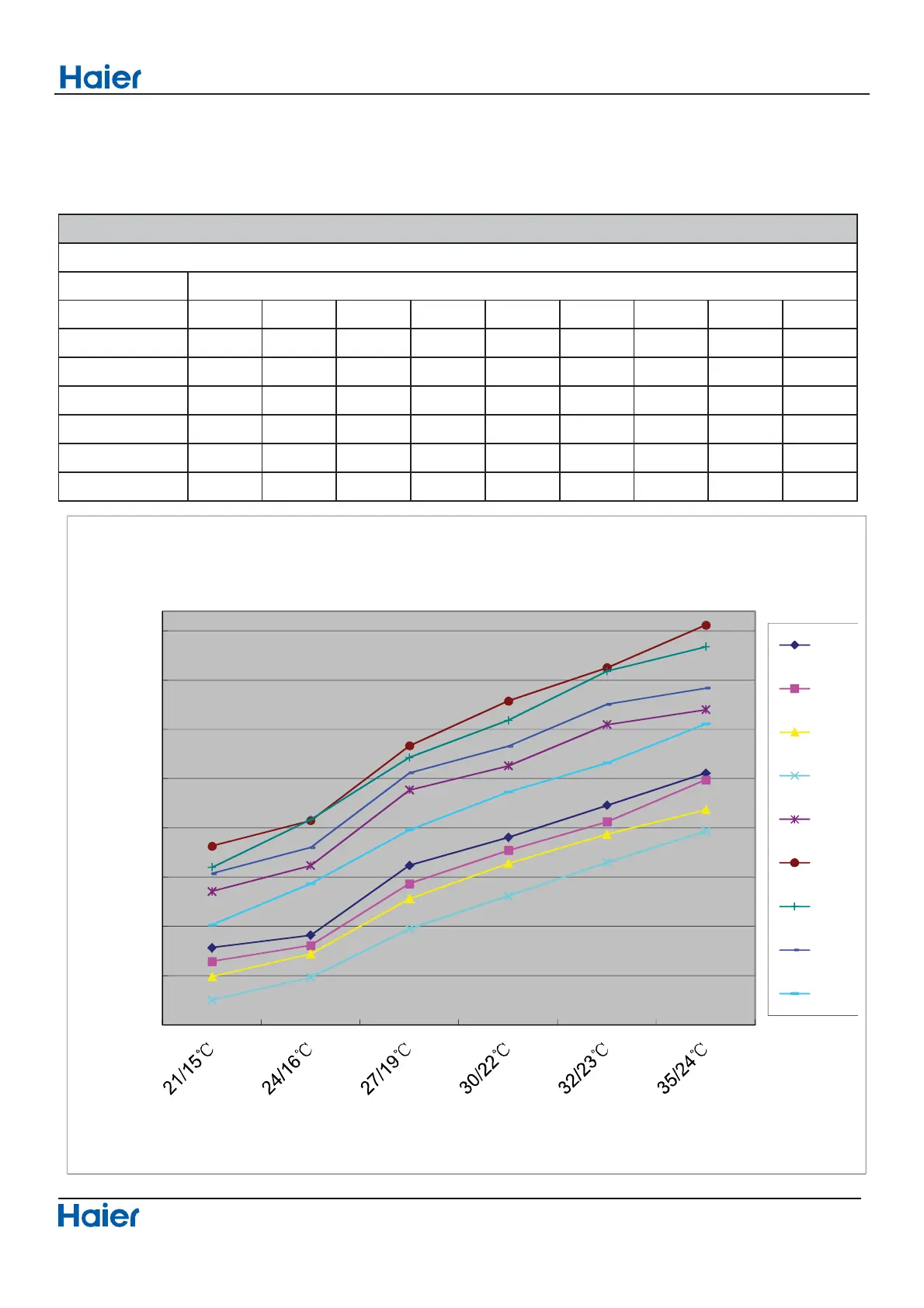 cooling capacity and indoor/outdoor temp.curves