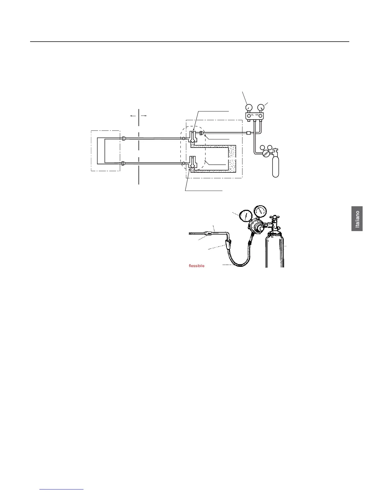 ƔLa valvola del gas e del liquido sono tutte in stato di chiusura. Per prevenire l'entrata dell'azoto nel sistema di circolazione