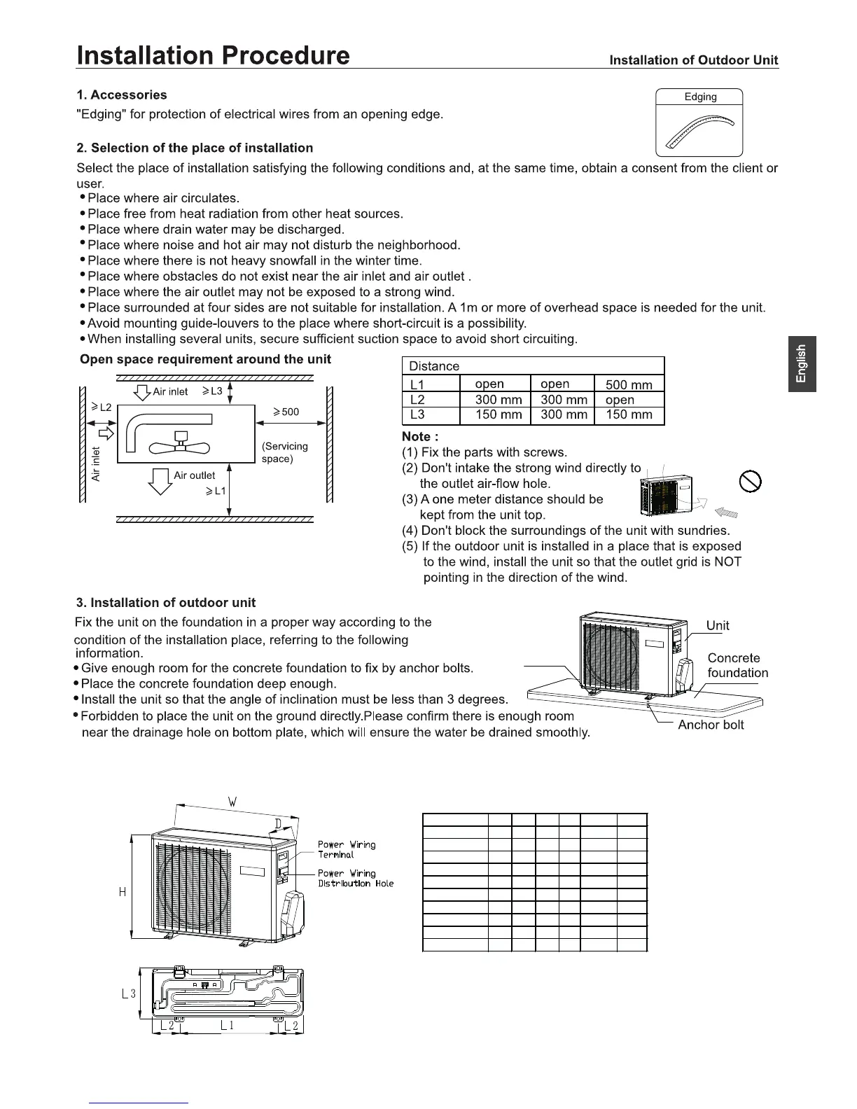 Model W D H L1 L2 L3