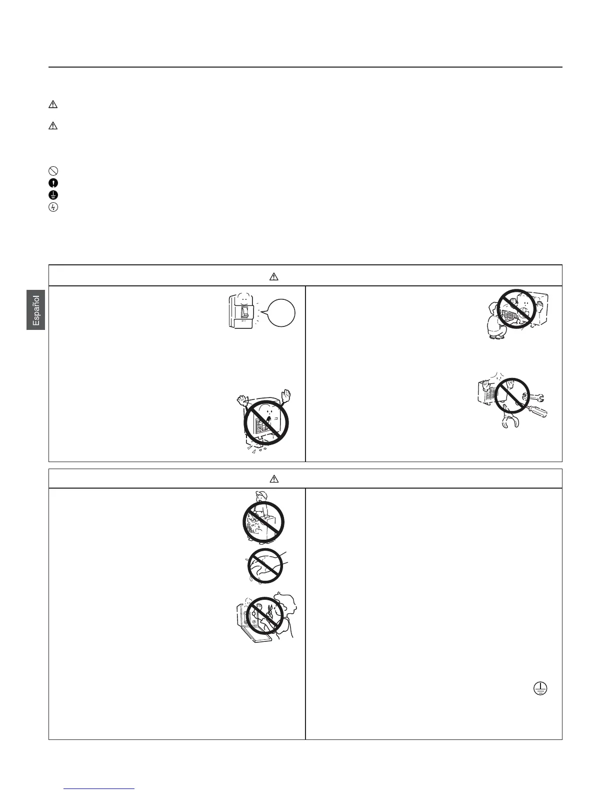 : atención a las descargas eléctricas (este símbolo se muestra en la etiqueta de la unidad principal.)