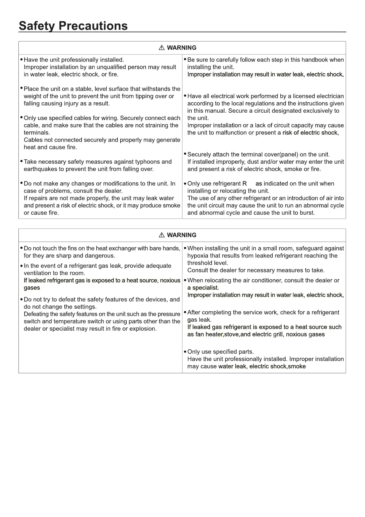 Haier 1U71S2SR2FA - Installation Safety Guidelines; Installation Warning Statements; Installation Caution Statements