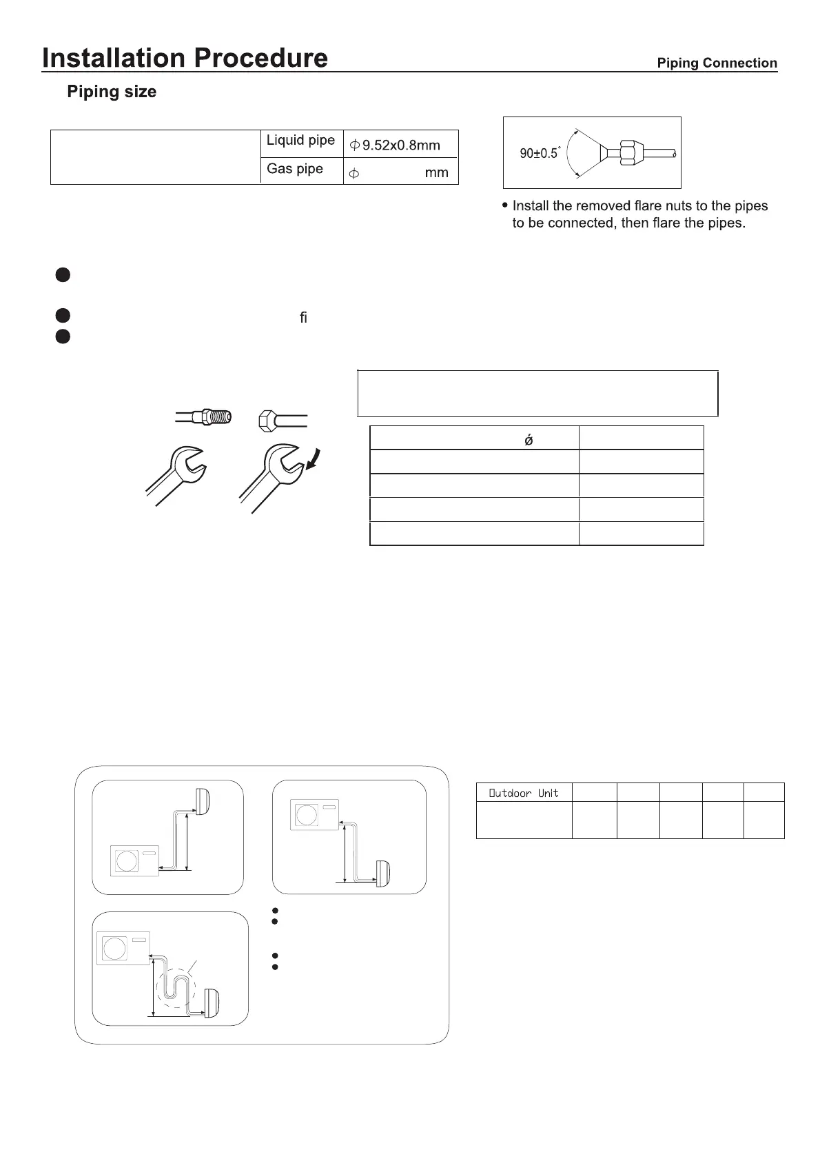 The standard pipe length is C m. If it is over D m, the function of the unit will be affected. If the pipe