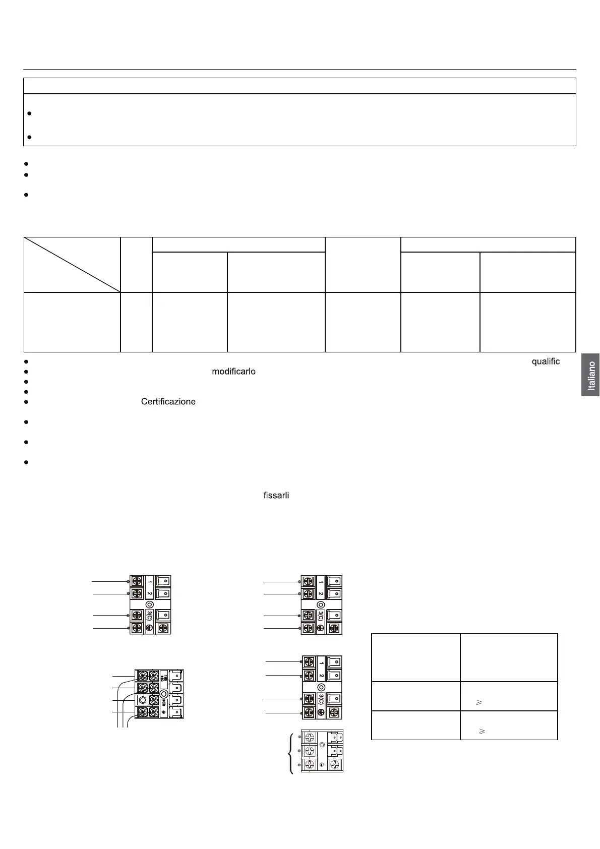 Non collegare più di 3 cavi al blocco del terminale. Utilizzare sempre alette terminali ondulate di tipo rotondo con presa isolata alle estre-