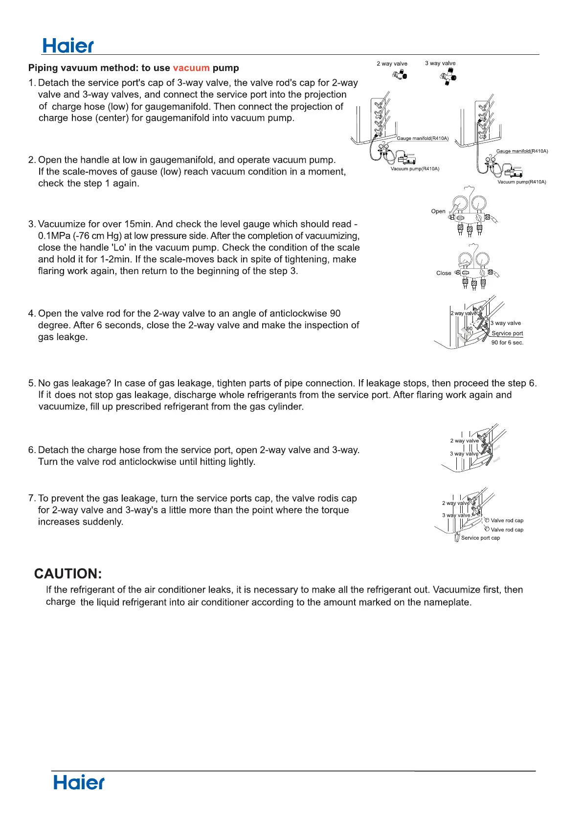 refrigerant. Vacuumize first, then