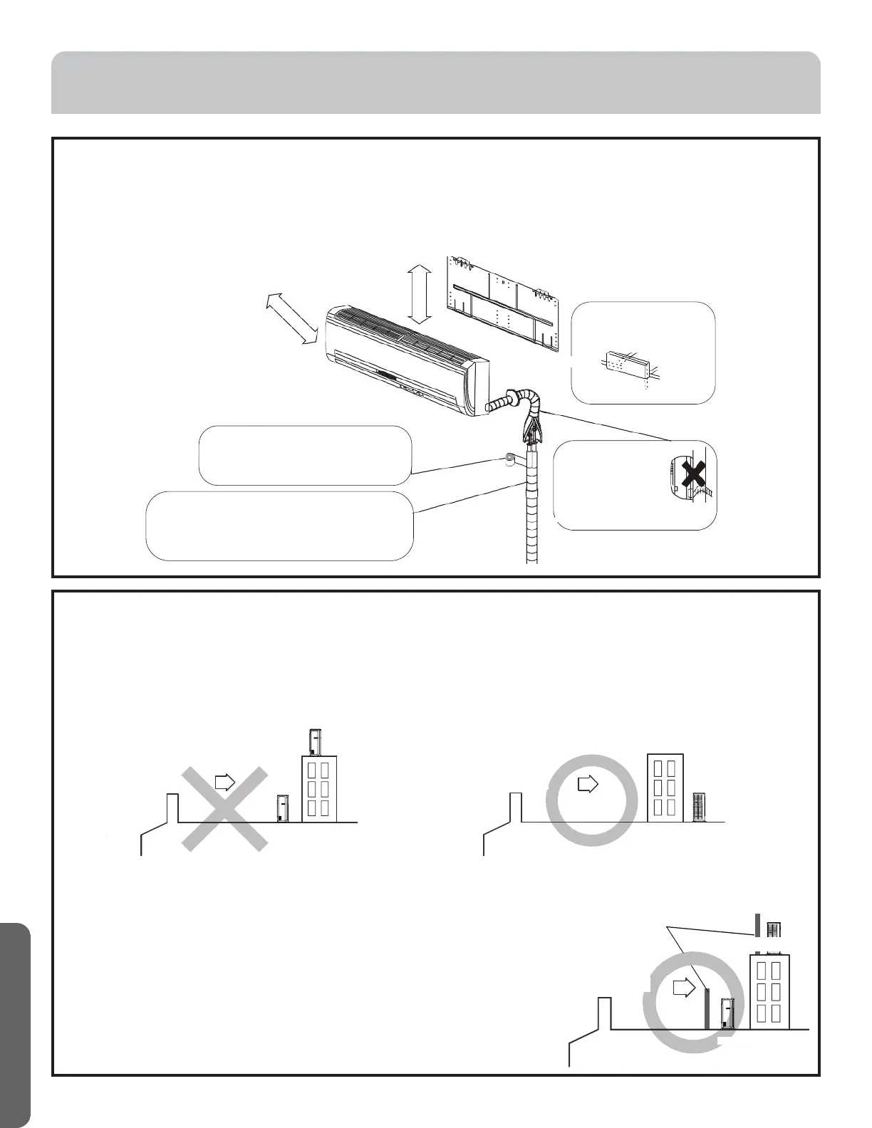 • Instale la unidad de exterior en un lugar (tal como edificios cercans , etc.) donde se encuentre protegida de la brisa del