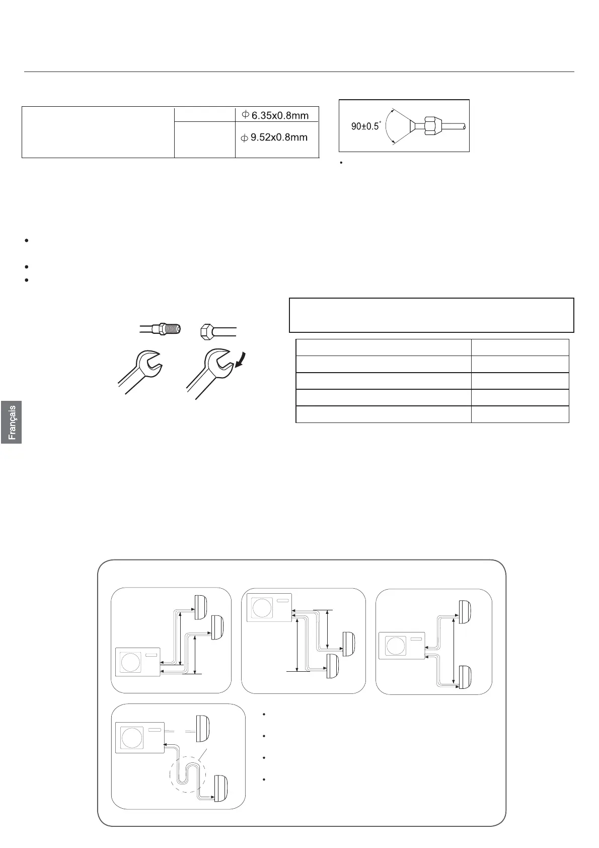 gueur standard du tuyau des unités intérieure est de 5 m. Si la longueur totale du tuyau dépasse les 20m, le