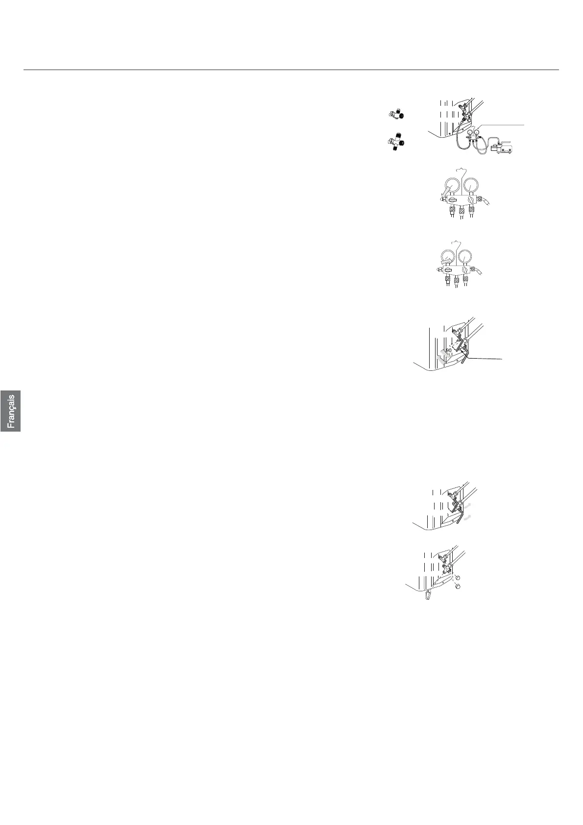 Si la fuite de gaz se maintient, déchargez tout le réfrigérant de l'ori¿ce d'entretien. Après avoir effectué l'évasement et le vide, remplis-