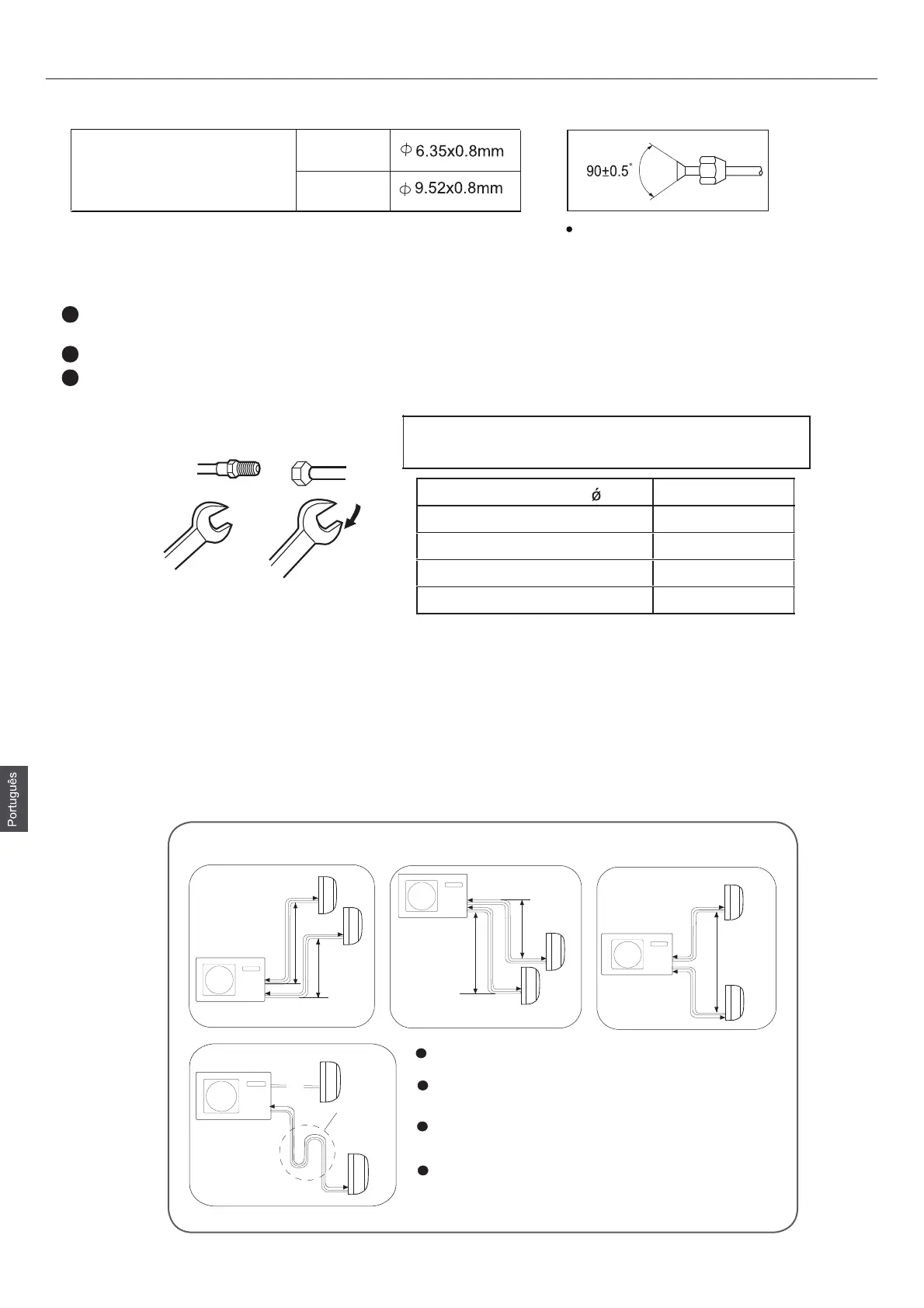 O comprimento padrão do tubo é de C m. Se for mais de D m, o funcionamento da unidade pode ser afetado.