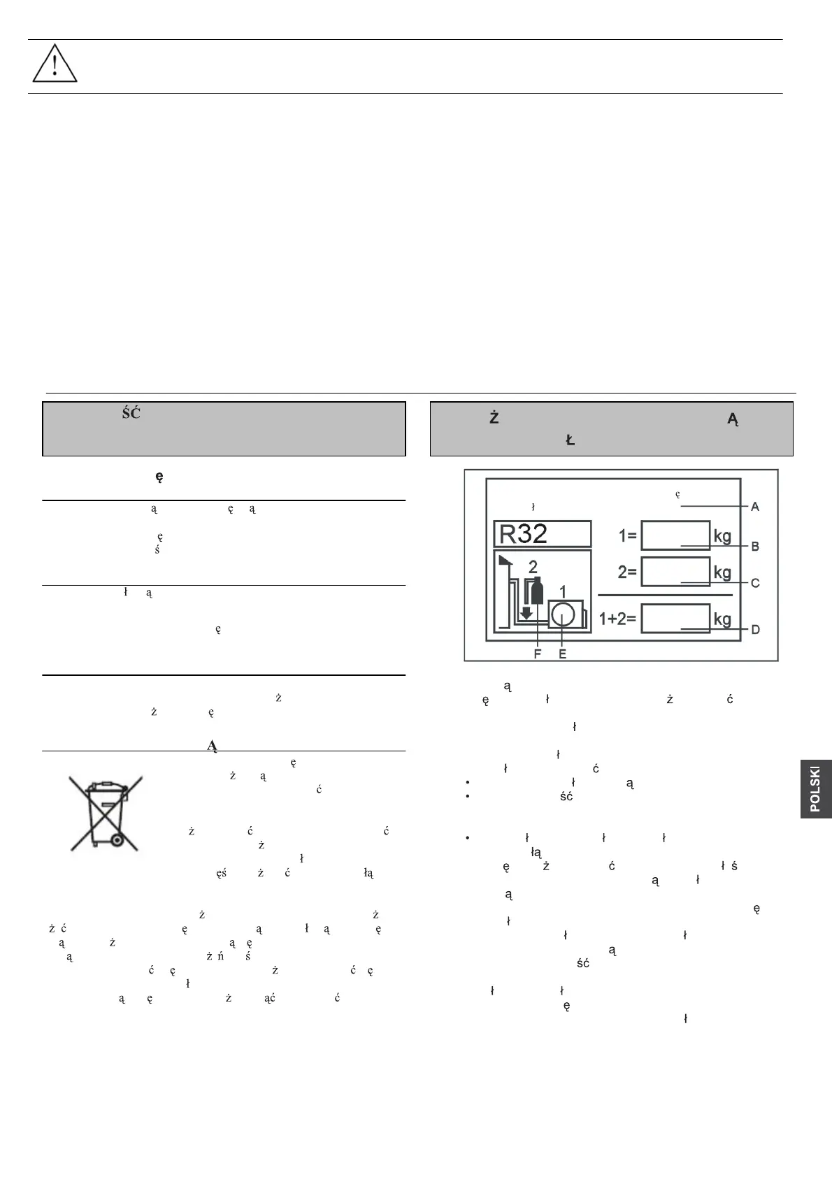 Ÿ W przypadku wystąpienia wycieku, gaz gromadzący siĊ w pobliĪu klimatyzatora moĪe doprowadziü do wybuchu poĪaru. Odpowiednio
