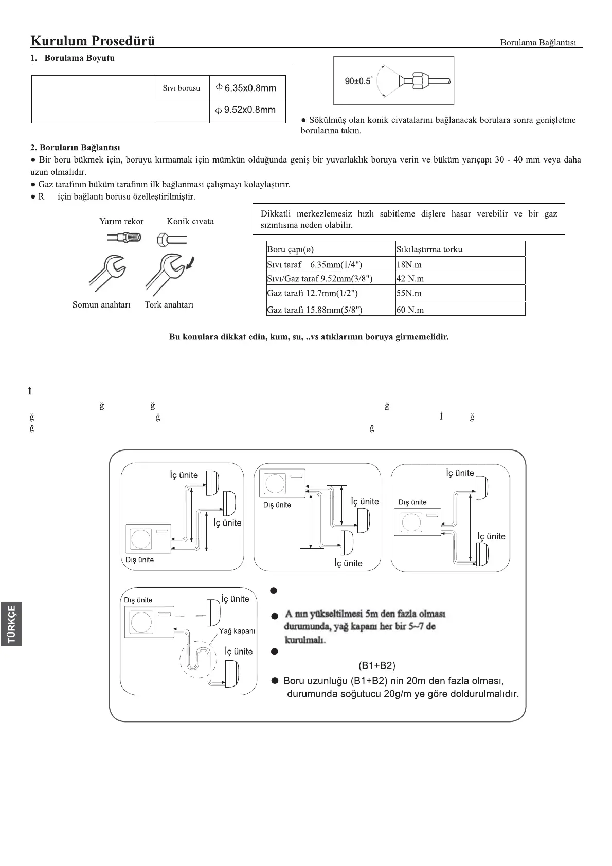 u C m dir. E er D m den büyük ise, ünitenin fonksiyonu etkilenecektir. E er borunun uzatÕlPDVÕ gerekiyorsa, E g/m ye göre