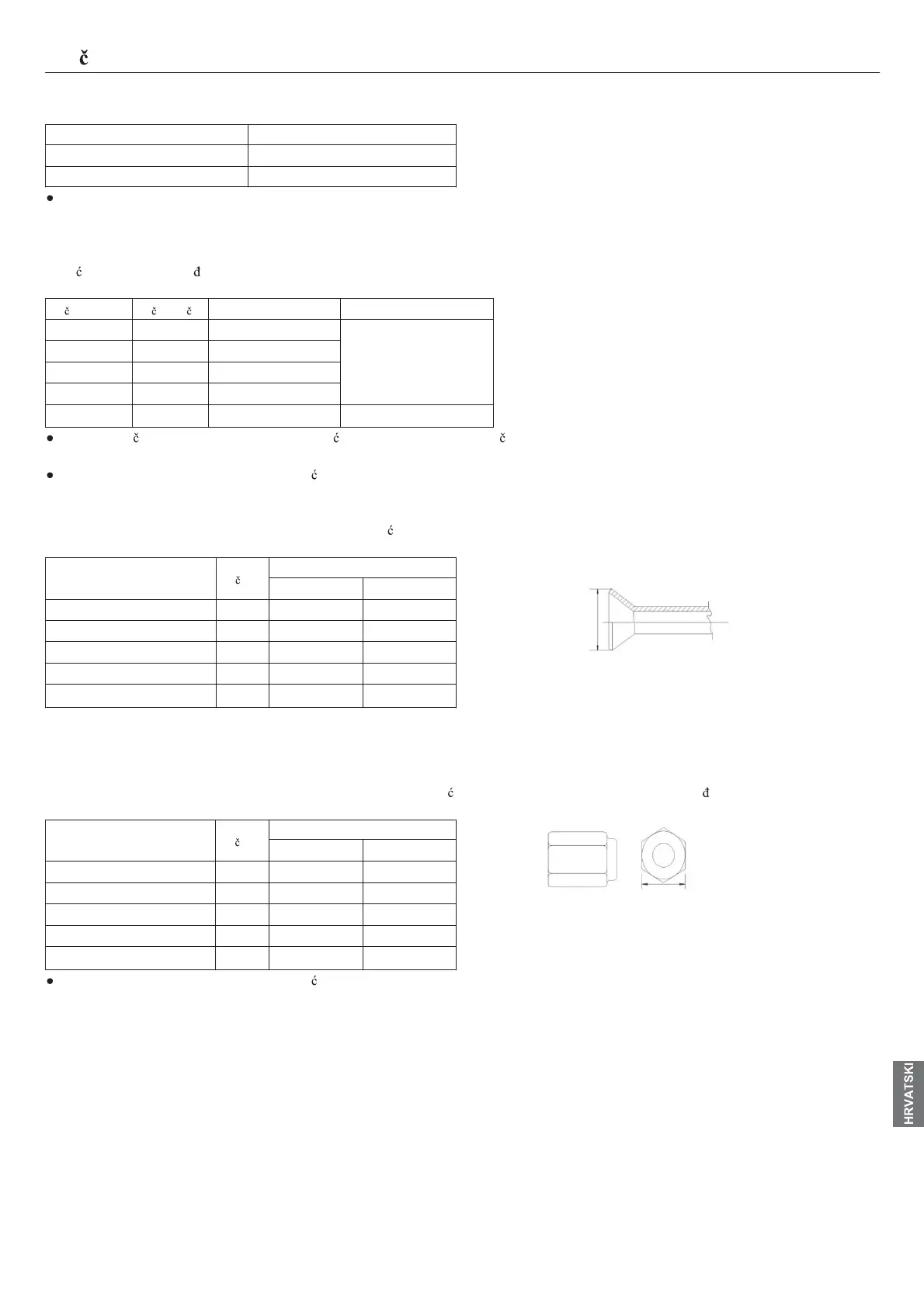 Tablica prikazuje japanske standarde. Koriste i ovu tablicu kao referencu, izaberite cijevi koje zadovoljavaju lokalne standarde.