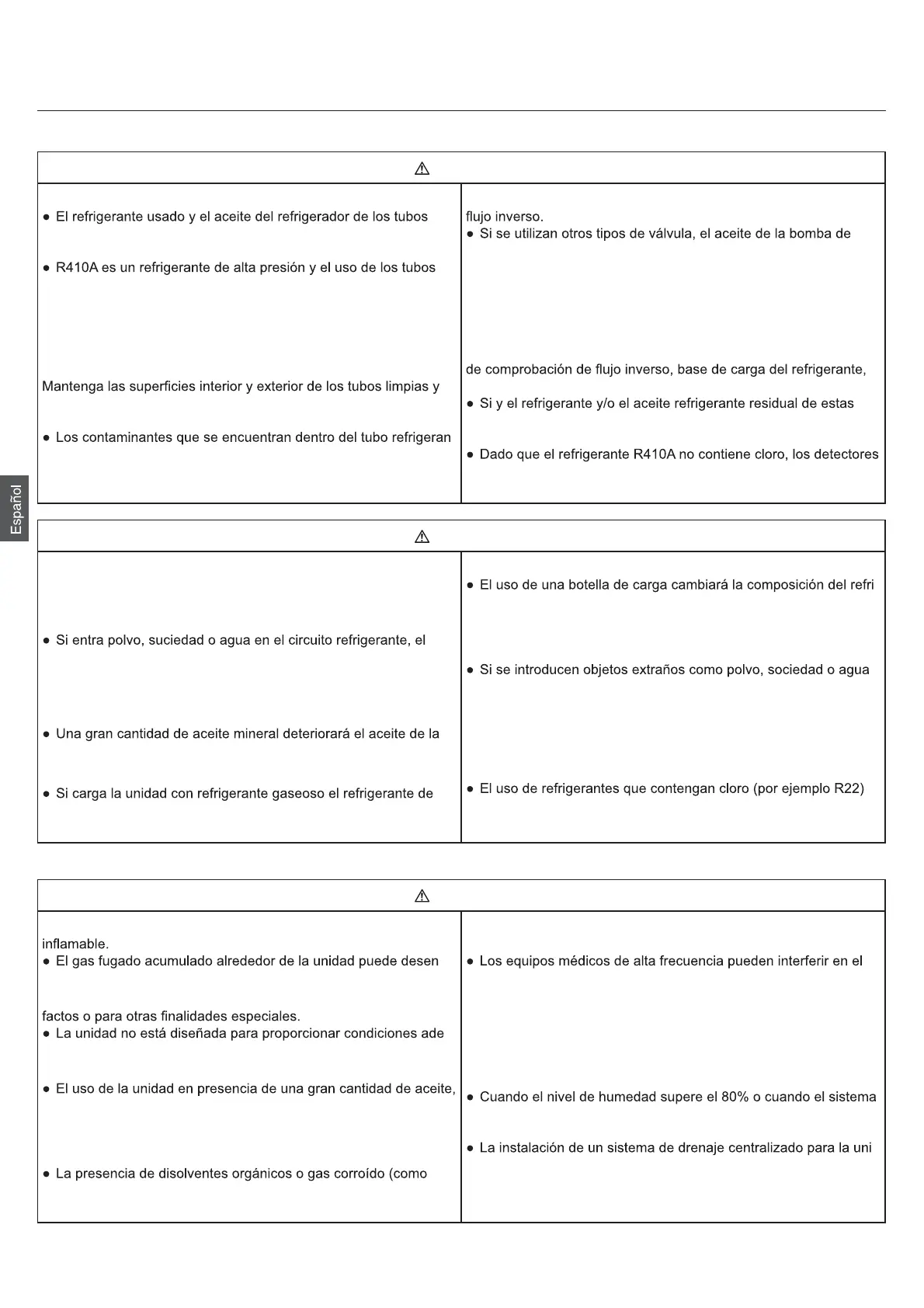 No instale la unidad en lugares donde haya riesgo de fuga de gas