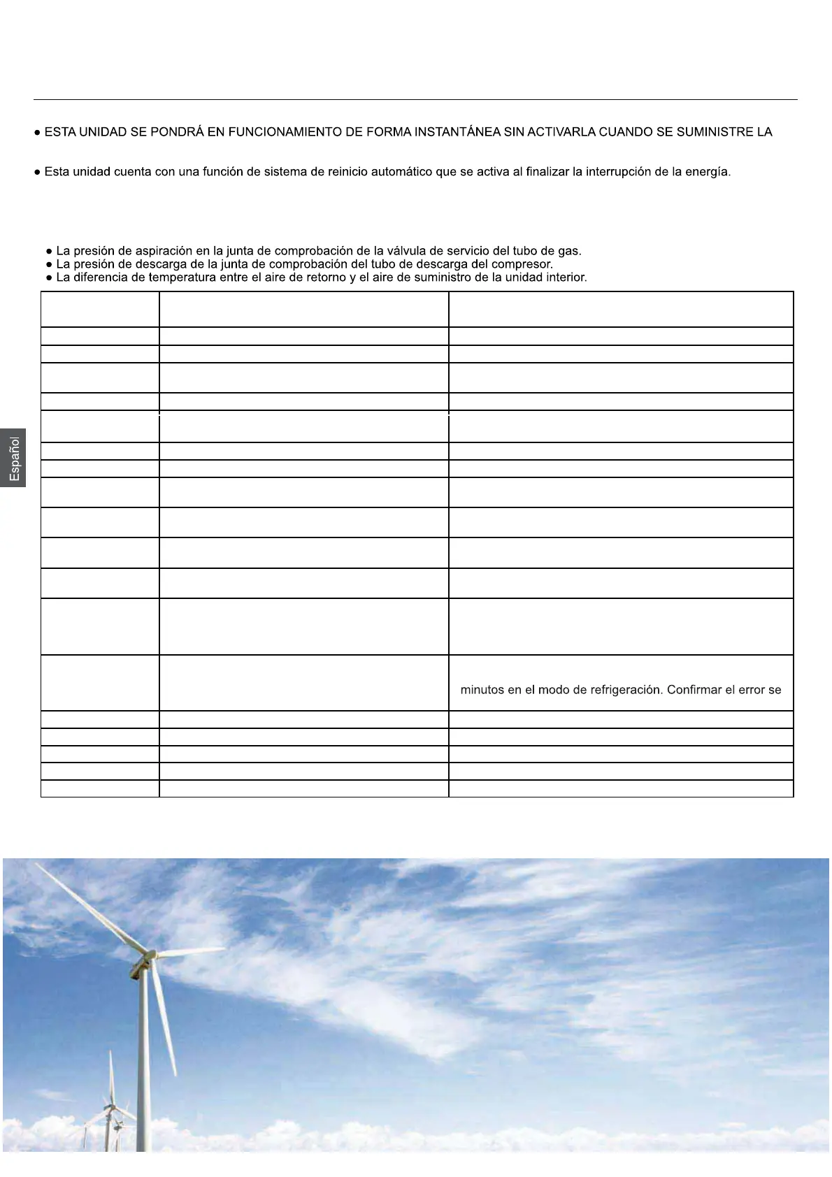 Ponga la unidad en funcionamiento de forma continua durante 30 minutos y compruebe lo siguiente.
