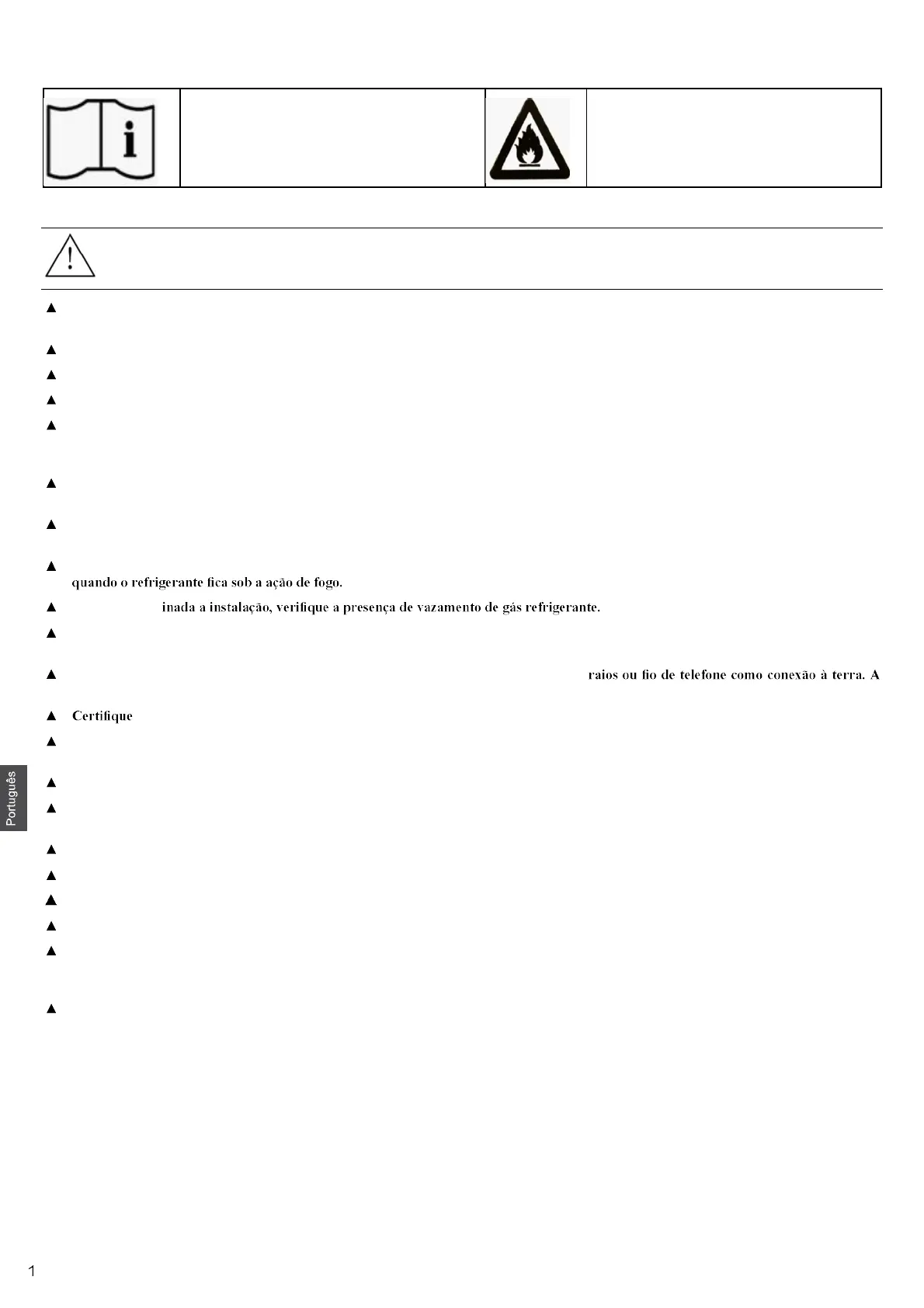No caso de vazamento de gás refrigerante durante a instalação, ventile a área imediatamente. Gases tóxicos podem ser emanados