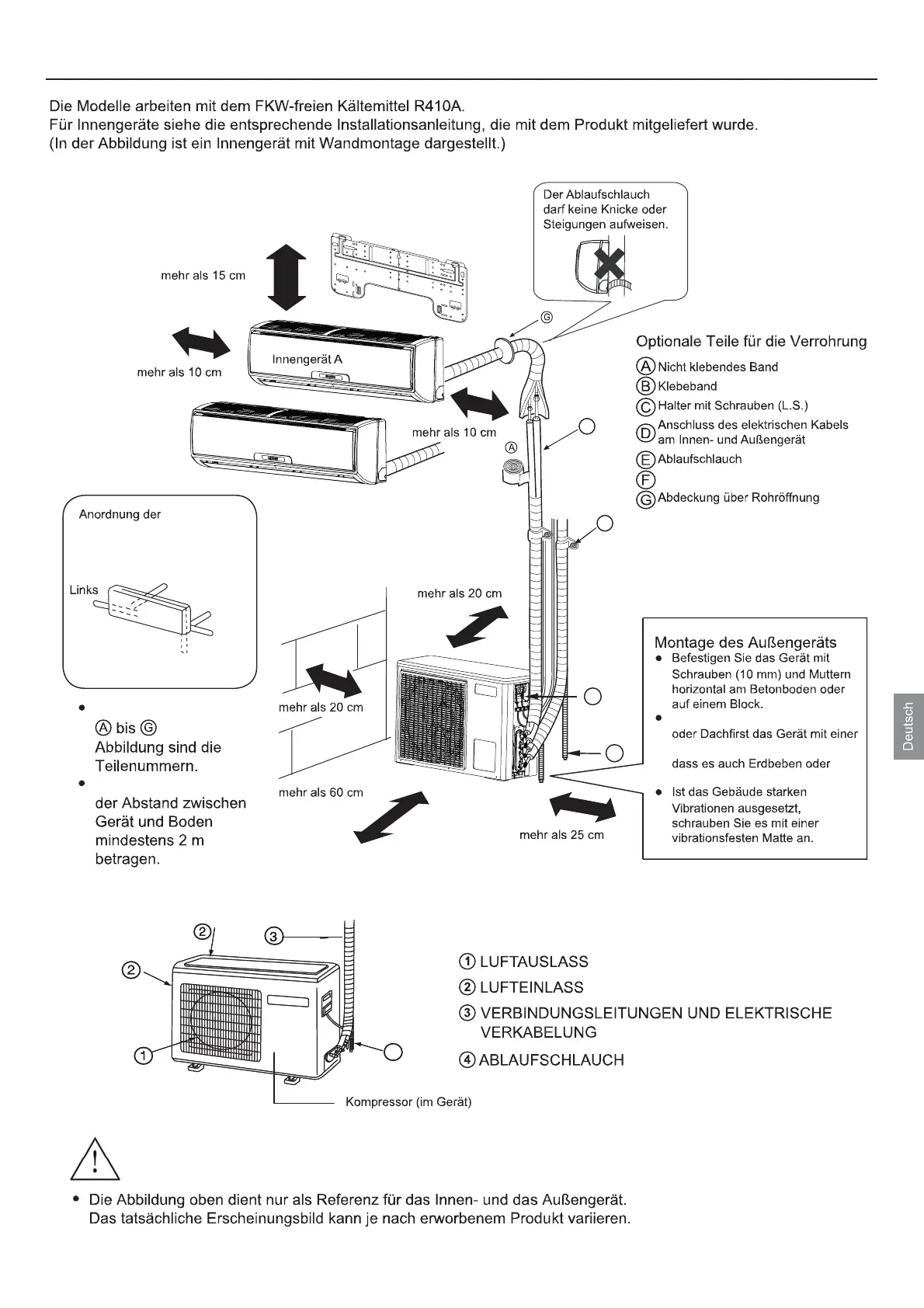 Ist der linke Abflussschlauch zu nutzen, dann stellen Sie sicher, dass das Loch ausreichend groß ist.