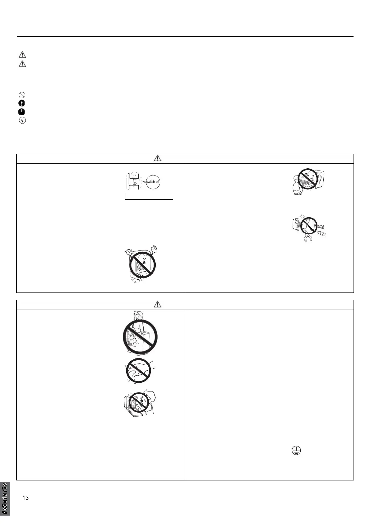 : Pas op voor elektrische schokken (dit symbool wordt weergegeven op label op het apparaat).