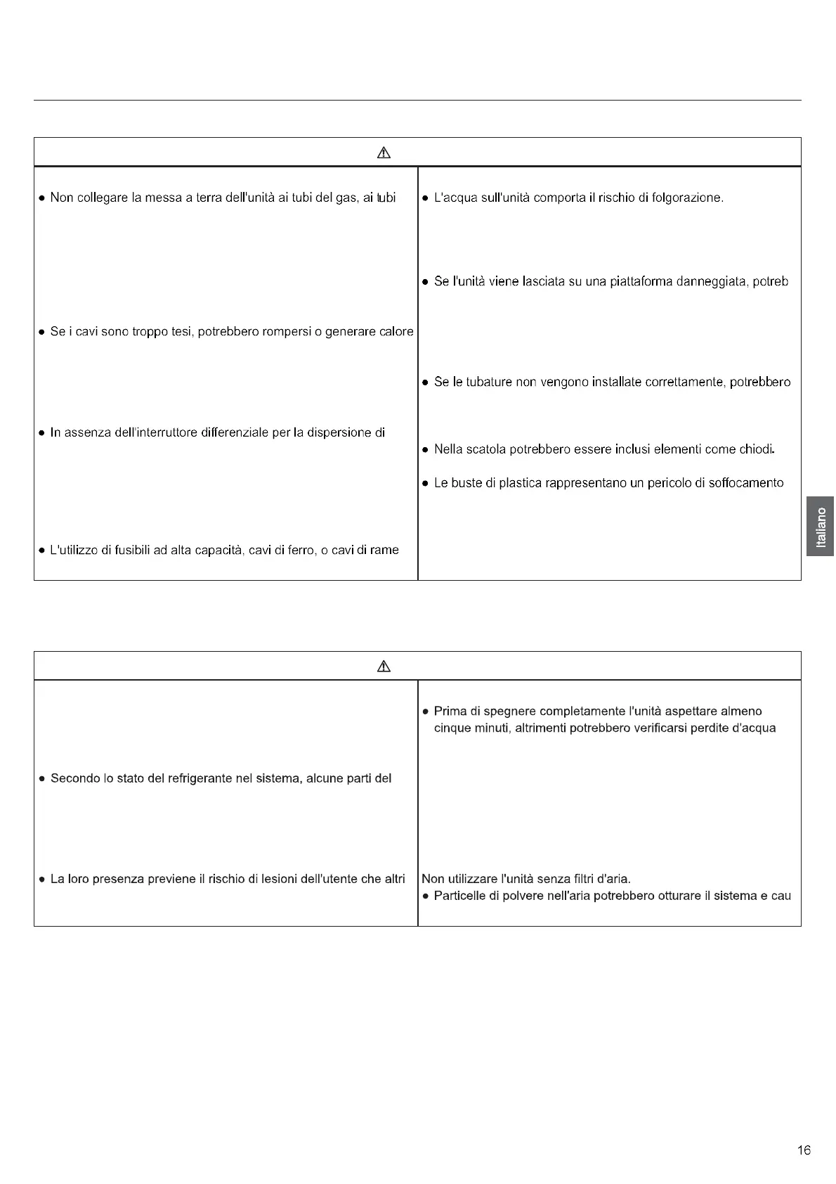 Non utilizzare l'unità se i pannelli o le griglie di sicurezza non siano