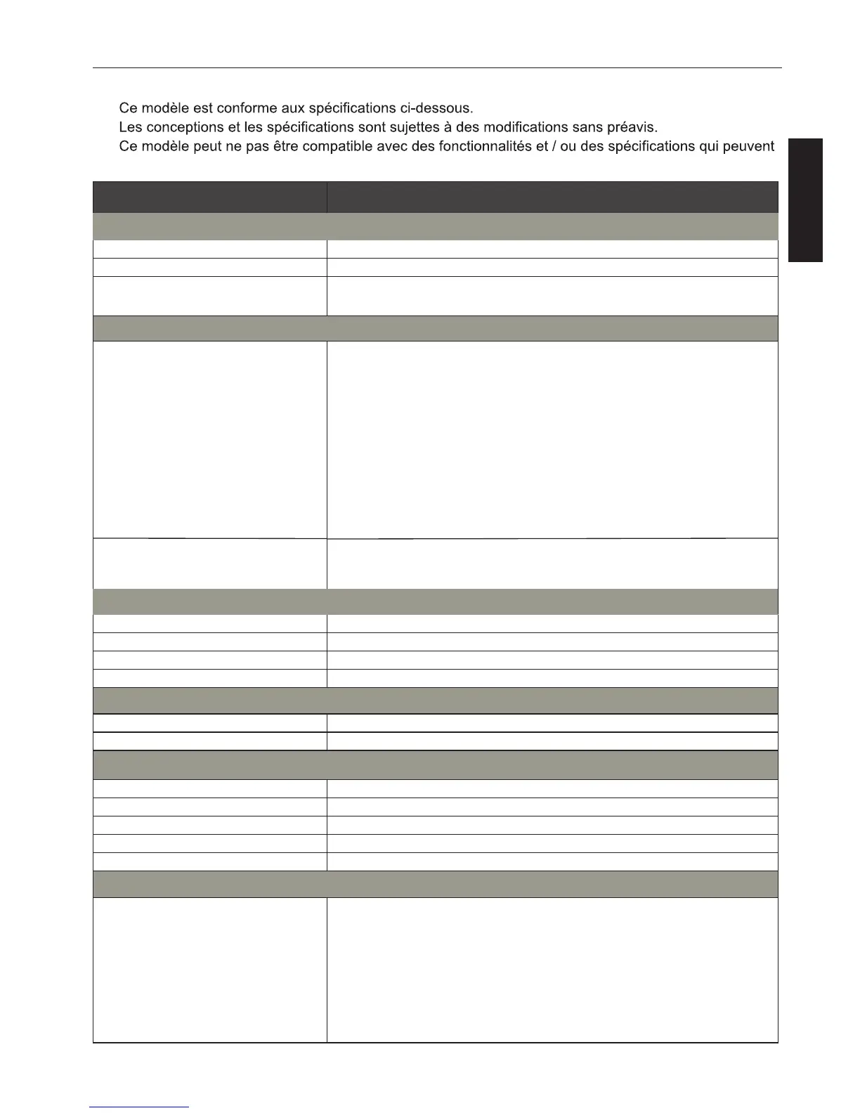 NTSC : CH2-CH69 (antenne) / CH1-CH135 (câble)