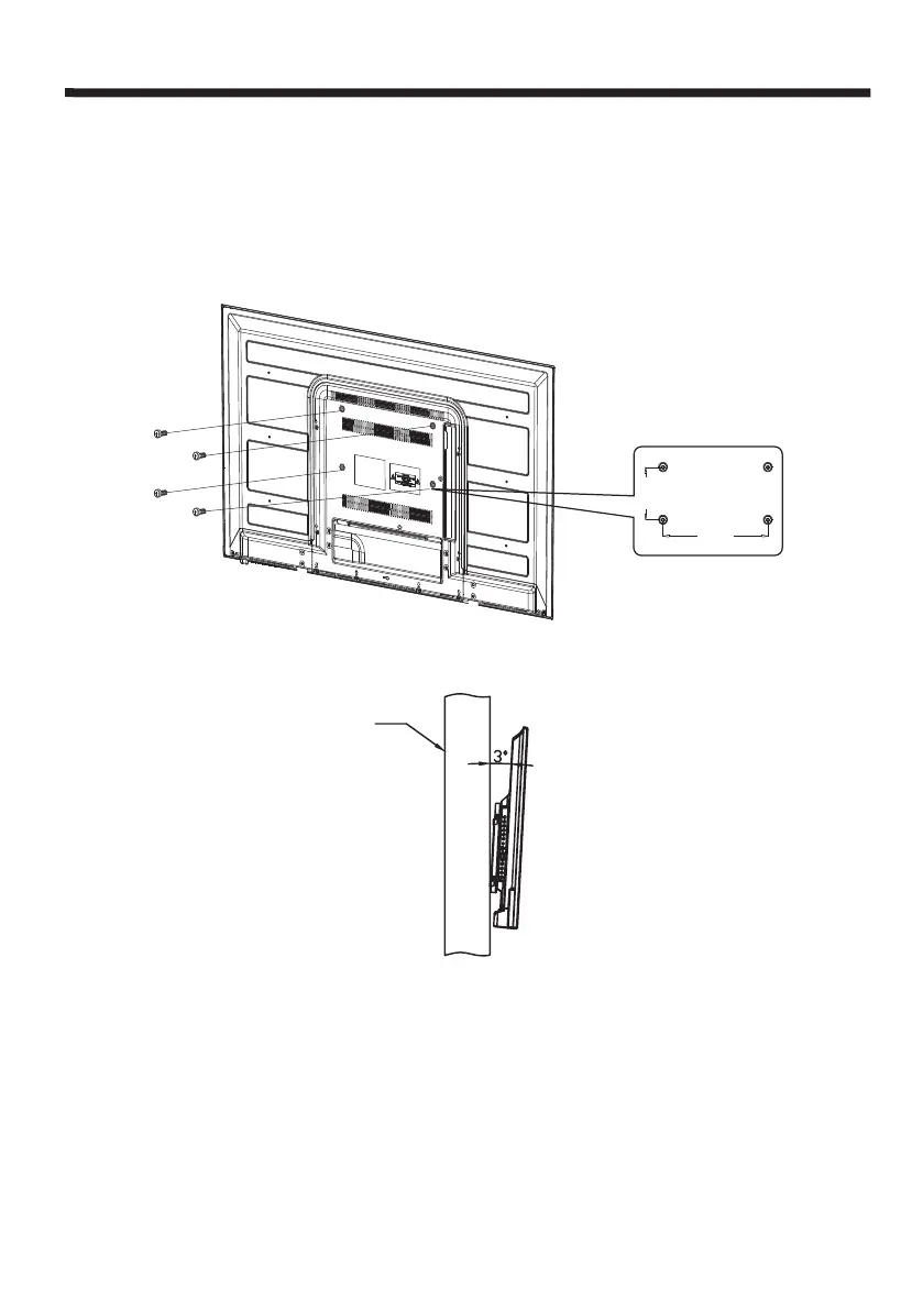 Attention: l'angle entre le téléviseur et le mur ne doit pas être supérieure à 3 degrés.