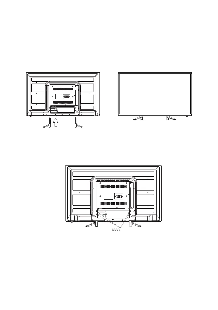 Por favor, asegúrese de que las patas del soporte del televisor son apuntadas hacia