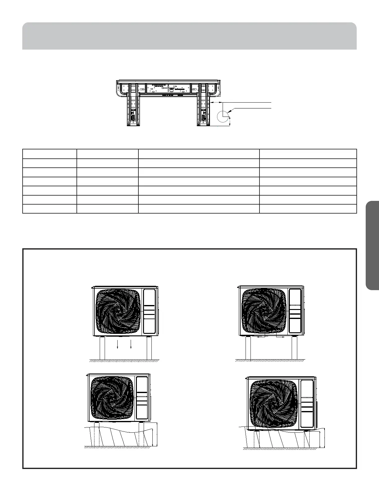 • Placezles coussinets antivibrations fournis sur les pieds de l’unité extérieure.