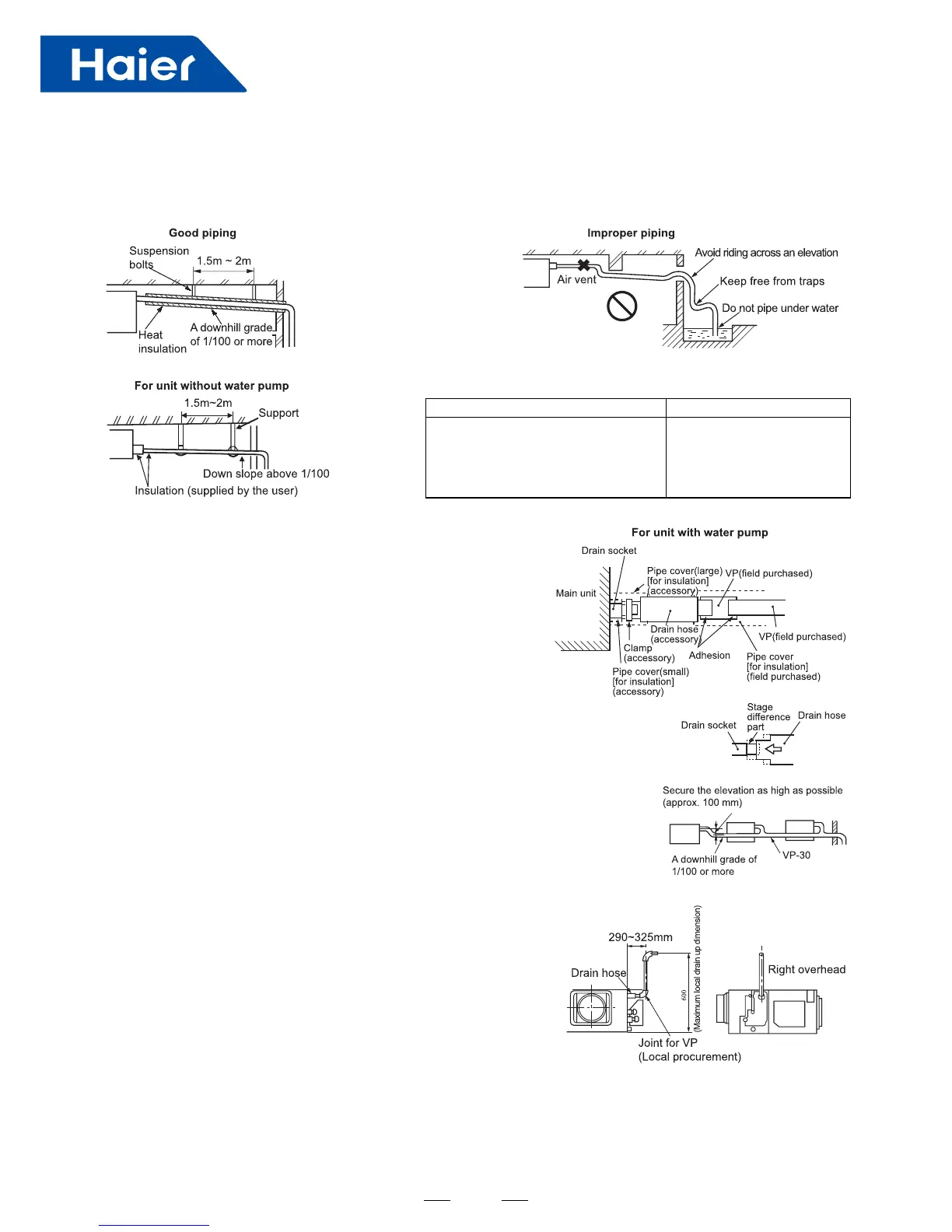 (a) Drain piping should always be in a downhill grade (1/50-1/100) and avoid riding across an elevation or making
