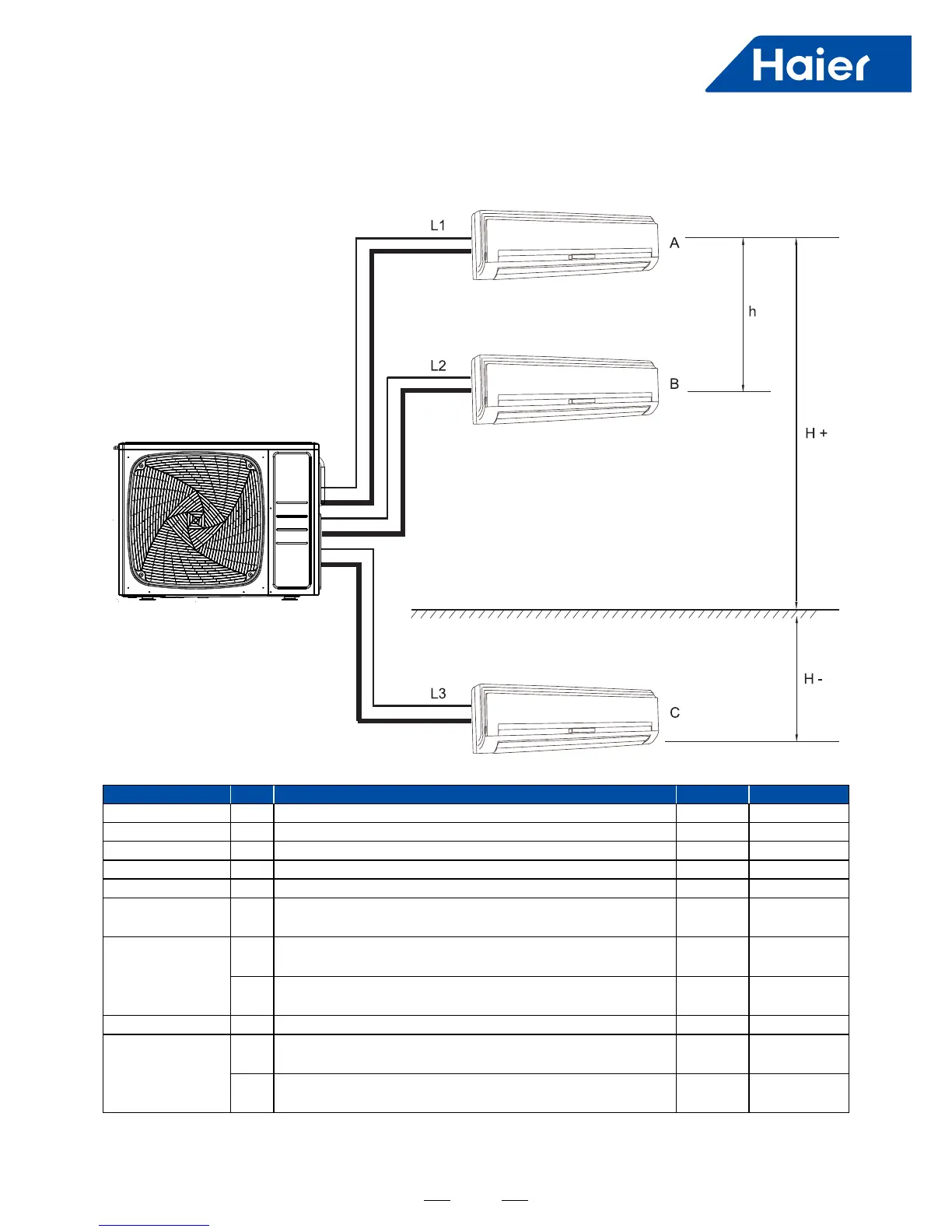 H+ m Drop between the outdoor unit and the indoor unit ≤ 5 ≤ 15