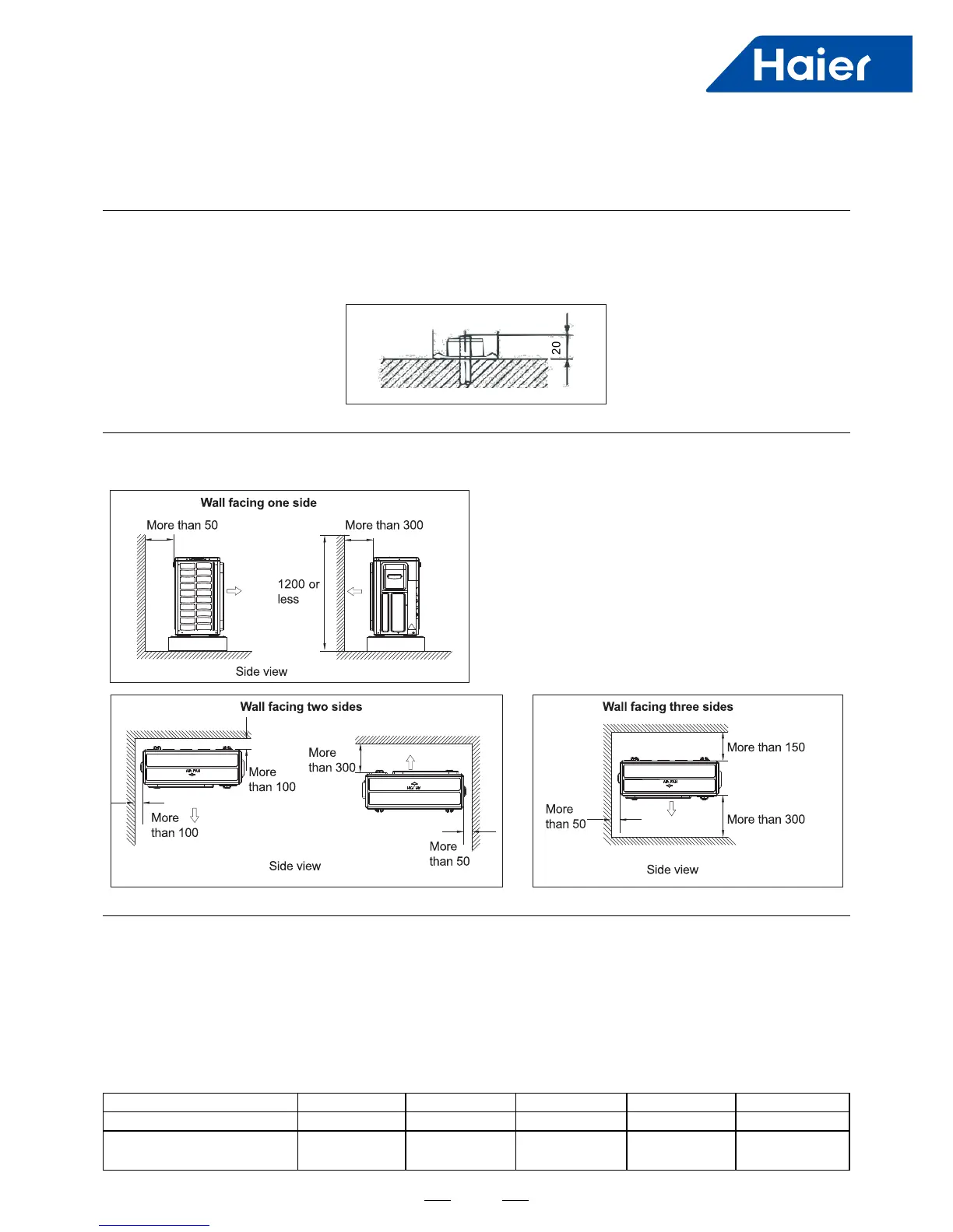 • For any of the below installation pattems, the wall height on the exhaust side should be 1200mm or less.