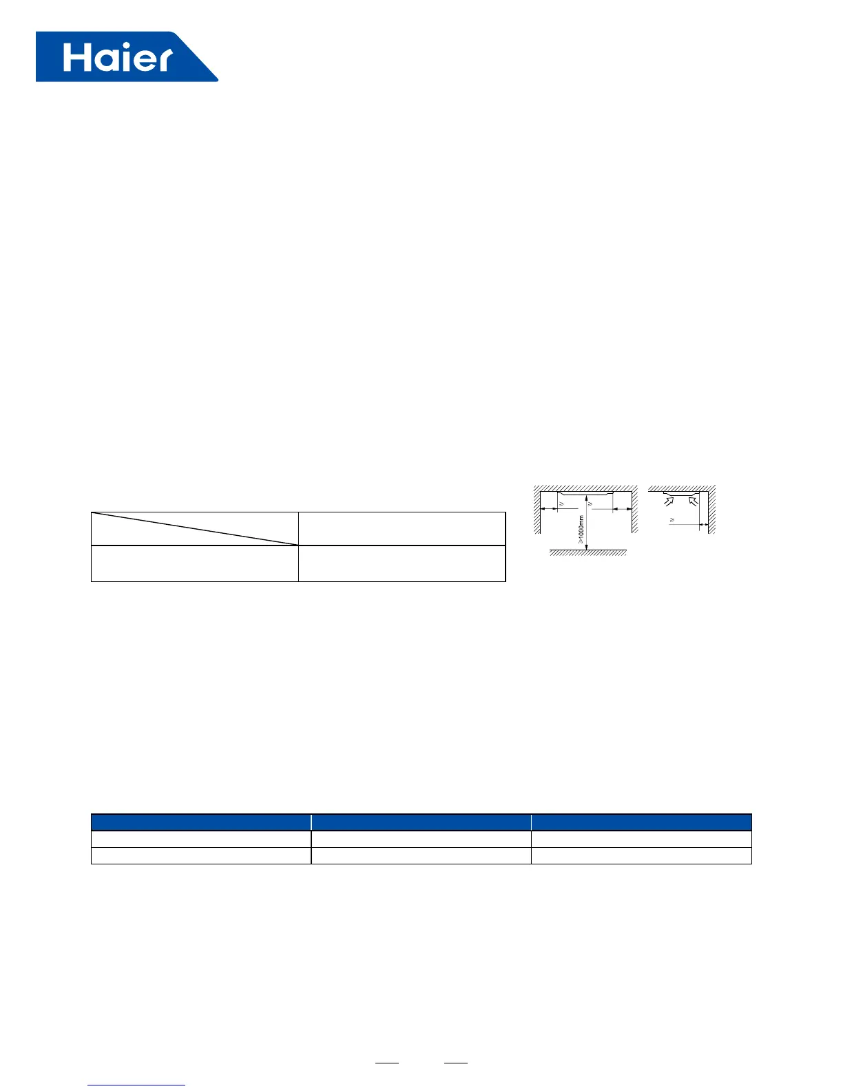 a.Places where chilled or heated air circulates freely. When the installation height exceeds 3m warmed air stays