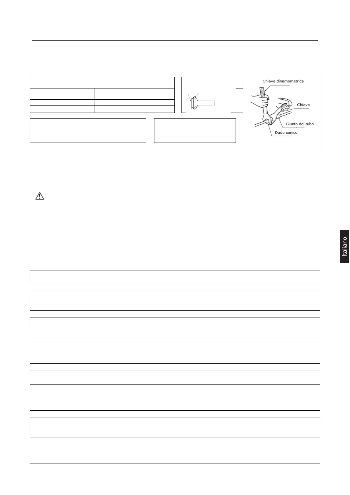 con una chiave dinamometrica usando la coppia specificata. Si veda il punto "3 Tubature del refrigerante "a pagina 23