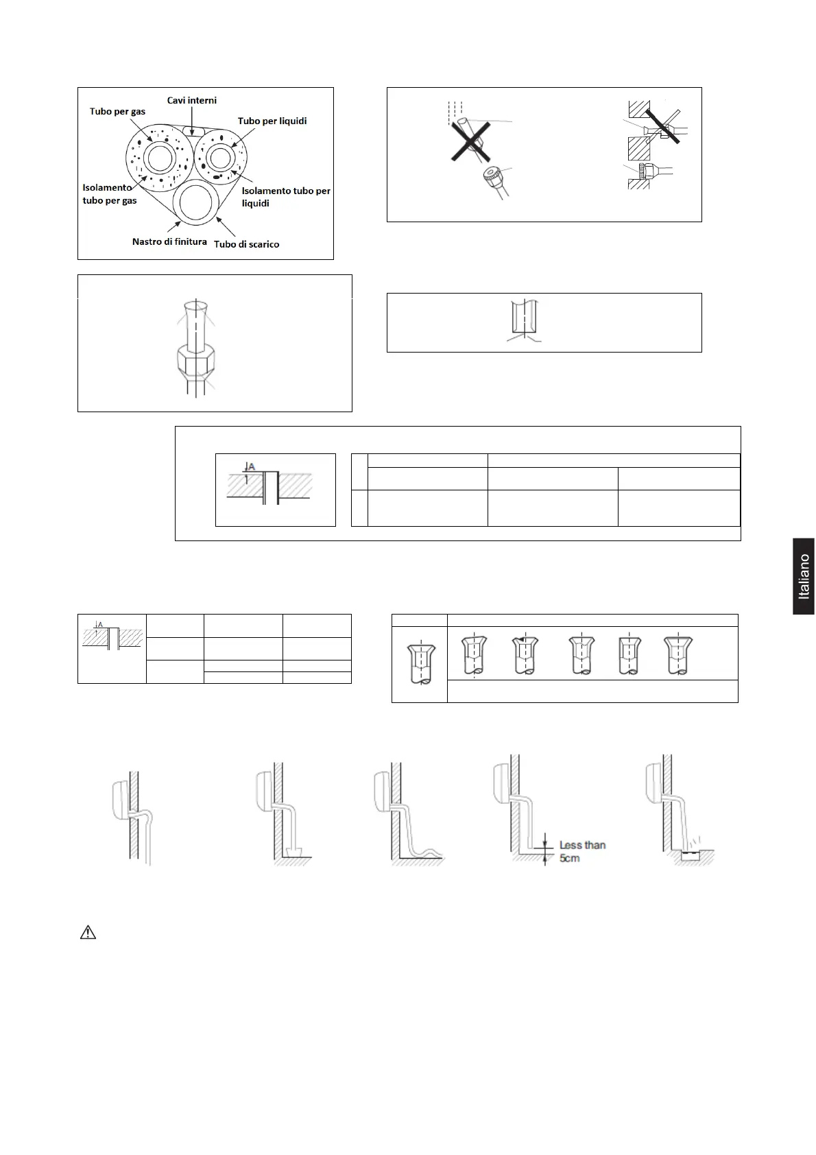 3) Non usare mai tubi già impiegati per altre installazioni in precedenza. Utilizzare solo componenti forniti con l'unità.