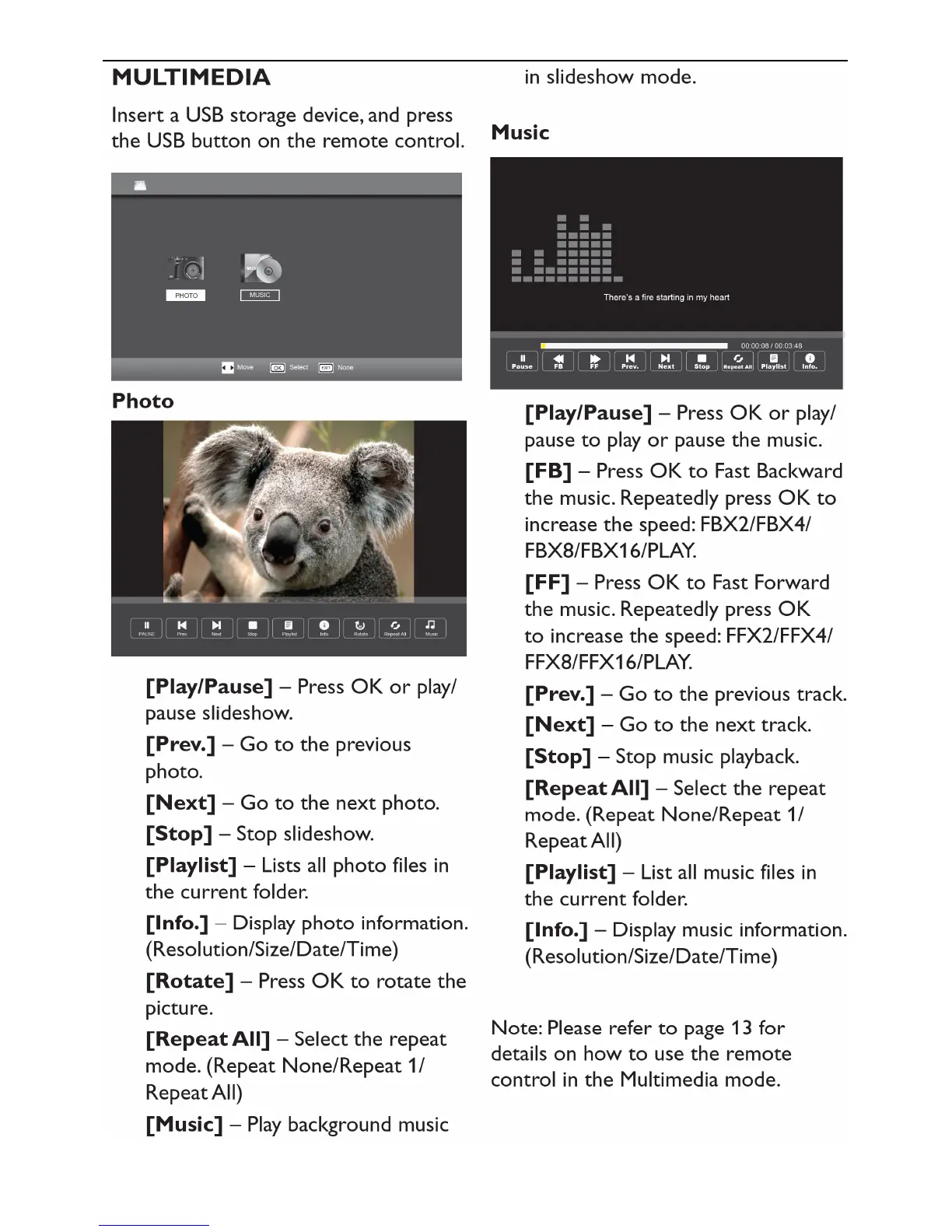Haier 40D2500 - Multimedia Playback; Photo Slideshow Controls; Music Playback Controls