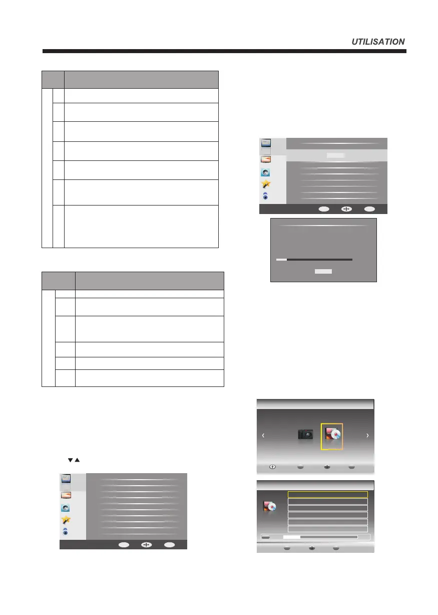 Dans ce menu, vous pouvez régler les chaînes TV