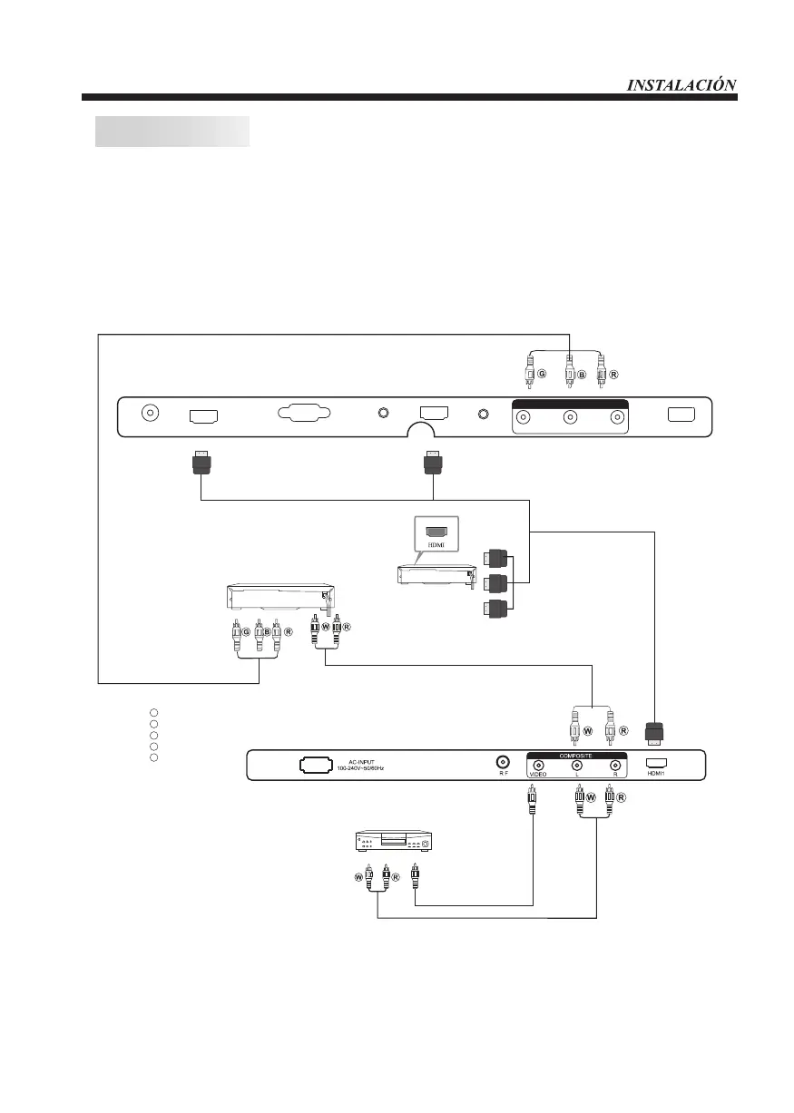 Hay una entrada Componente (Y, Pb, Pr) y otra de video compuesto (AV) ubicadas en la parte trasera del TV.